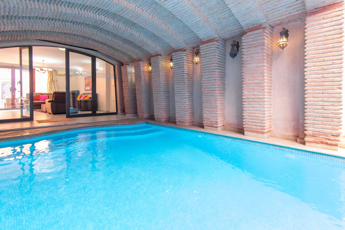 私人摩洛哥傳統庭院,配有溫水泳池和屋頂