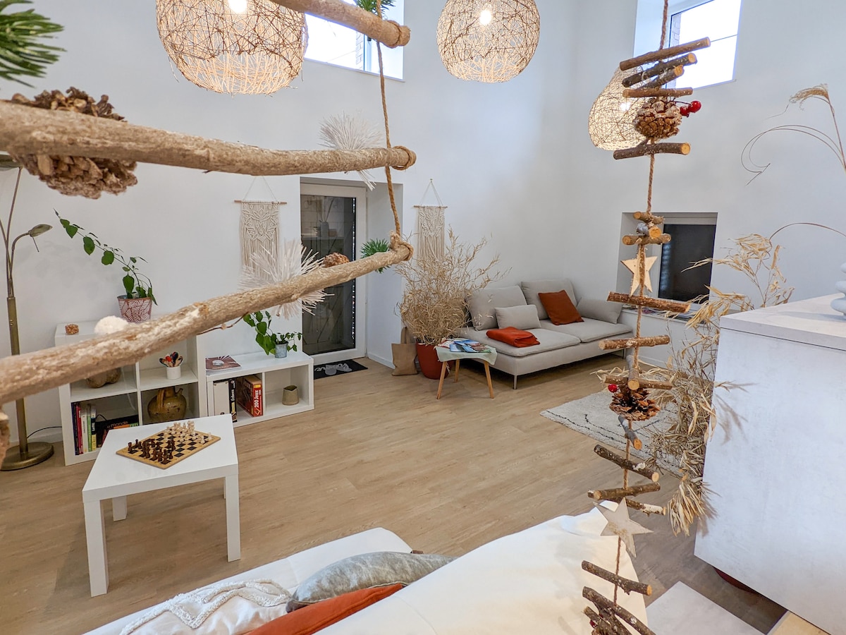 Maison 65 M² plein coeur du parc Naturel du Livradois Forez - Neuve - Terrasse 15 M² avec store Banne + Jardin 200 M² clos - Animal accepté (1) A l'étage : 1 Chambre avec Claustra - 15 M²- 1 Lit double 140 * 190 1 Salle d'eau Salon : Cuisine équipée ( Cookeo ,couvercle fendu, mais fonctionne parfaitement ) Canapé Lit 2 Personnes 140x190 Appareil à raclette Linge fourni (Draps, Bain ) Pas de wifi TV-TNT SAT Etage Attention poutre Basse montée/descente + marche
