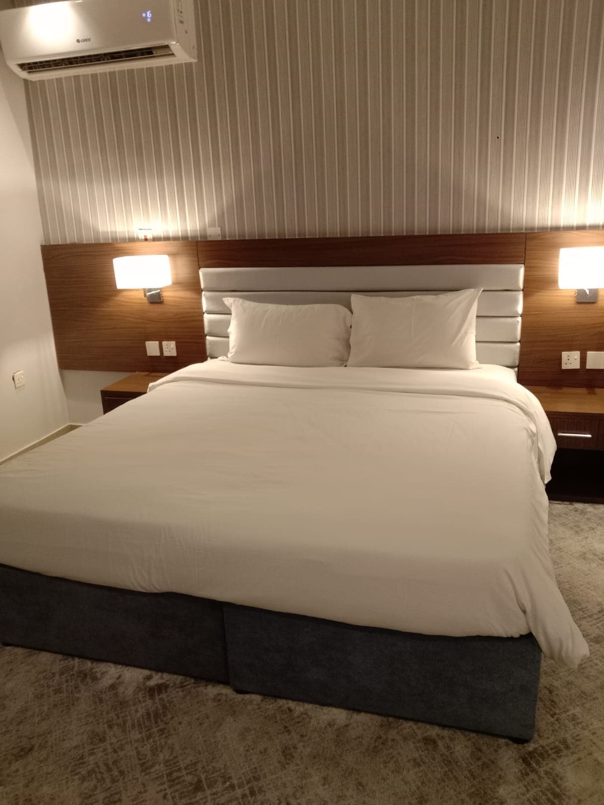 這個空間以寧靜、現代設計和現代技術為特色。房間還設有寧靜的照明,高檔飯店刷子,並注重整個小時提供清潔、客房服務和接待的最佳細節,飯店靠近(超市、餐廳、商場、洗衣店、清真寺、麵包店等) ,除了挑剔的接待人員如何為房客提供服務和滿足願望外,房間有洗衣機、保險箱、智慧電視螢幕和熨鬥。