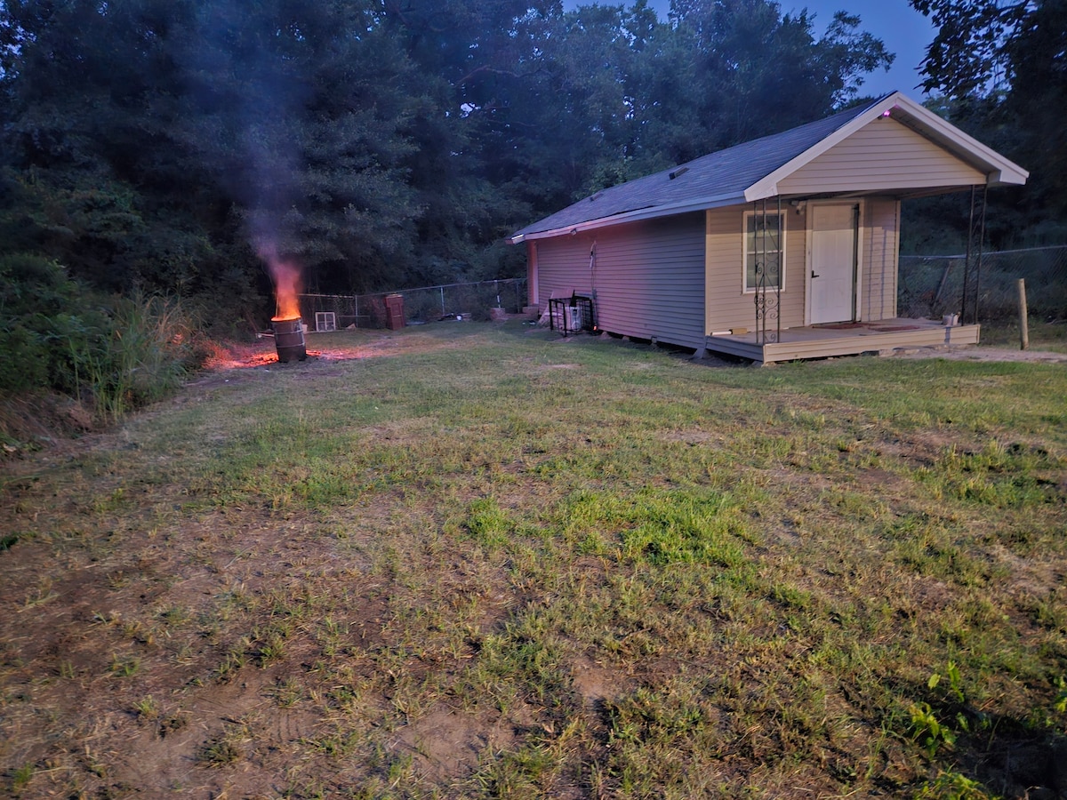 NO PETS. Located just 6 miles south of I-530 off of HWY 79S on 50 acres. Just 1 1/2 miles from Dollar Store, 15 mins from Walmart & Chick-fil-A and 18 mins from Saracen Casino. The Space The Rustic Lodge is a small but suitable place with the comforts of home. An exterior camera is located outside of home.