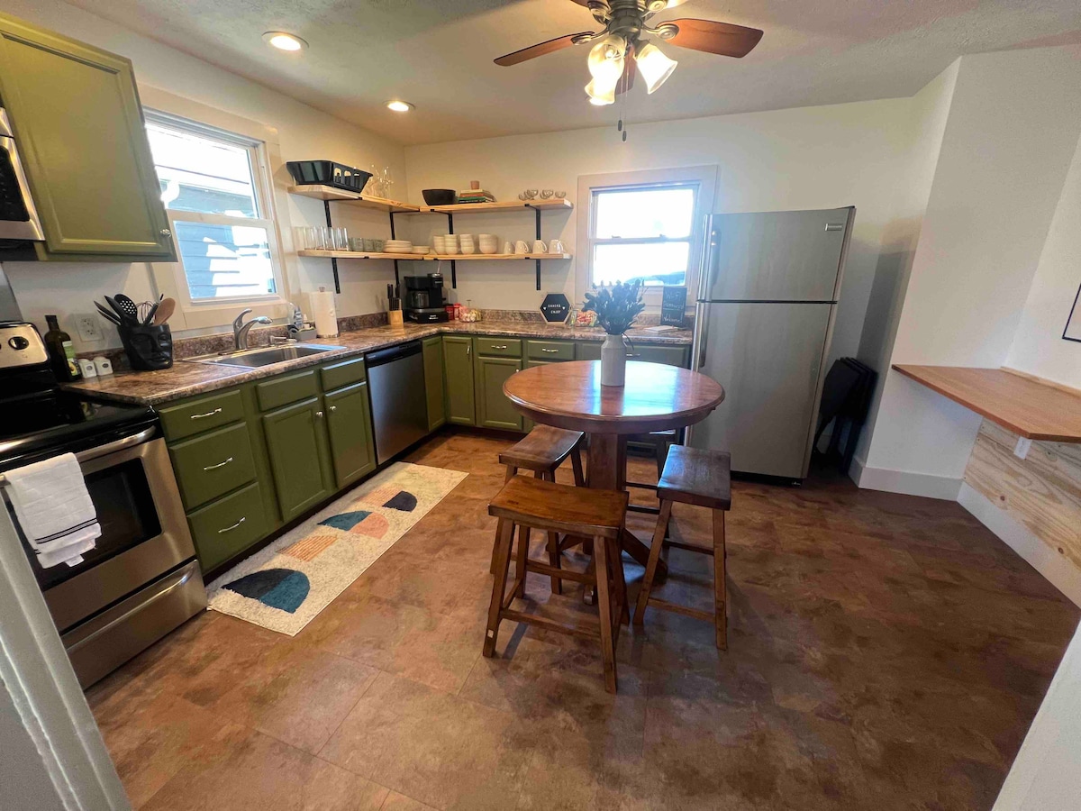 陽光明媚的2臥室小屋,有大後院和露臺。距離羅斯艾德體育場(Ross Aide Stadium)僅12分鐘路程! 步行即可抵達餐廳和酒吧。非常適合前往該地區的家庭或足球/籃球迷。 作為住在社區的房東,我致力於使用不含PFA的環保清潔產品。我維護天然草坪和庭院,不使用刺激性農藥/除草劑,這意味著草坪並不總是無雜草,但對寵物和兒童是安全的。