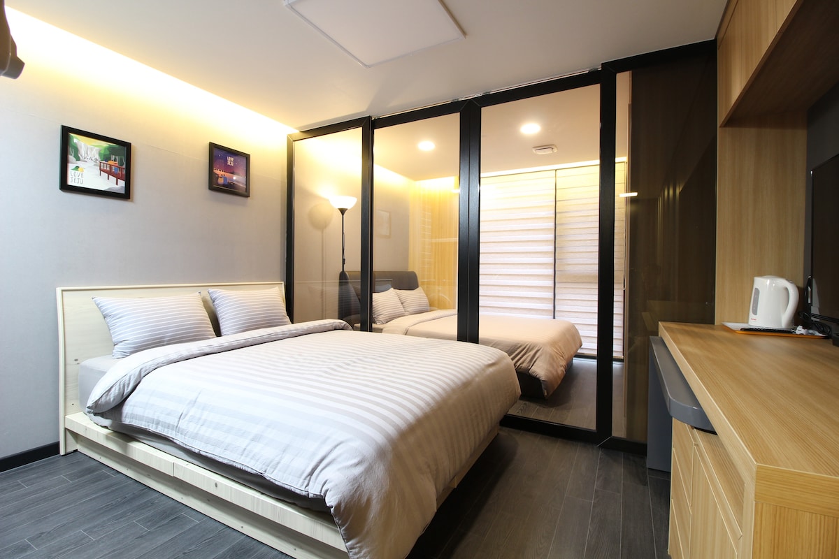 T1 [距離機場2.4公里, 10分鐘] 雙床高級住宅。濟州最佳位置