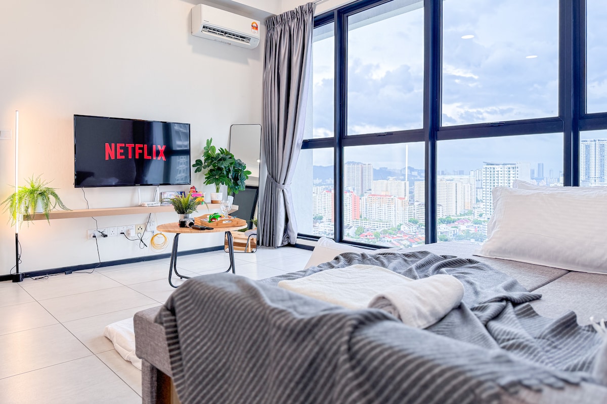 我們的2間臥室舒適套房位於槟城市中心,可輕鬆前往當地旅遊景點。就像入住飯店一樣,享有按摩椅、廚房、洗衣房和可愛的城市景觀。非常適合情侶、商務差旅人士和小家庭。 如果您餓了,別擔心,日式/韓式餐廳和7-11就在樓下。步行5分鐘即可抵達當地美食、OldTown、披薩、肯德基。 如果您喜歡這個繁忙城市中的安靜舒適的地方,您一定會喜歡我們的地方!
