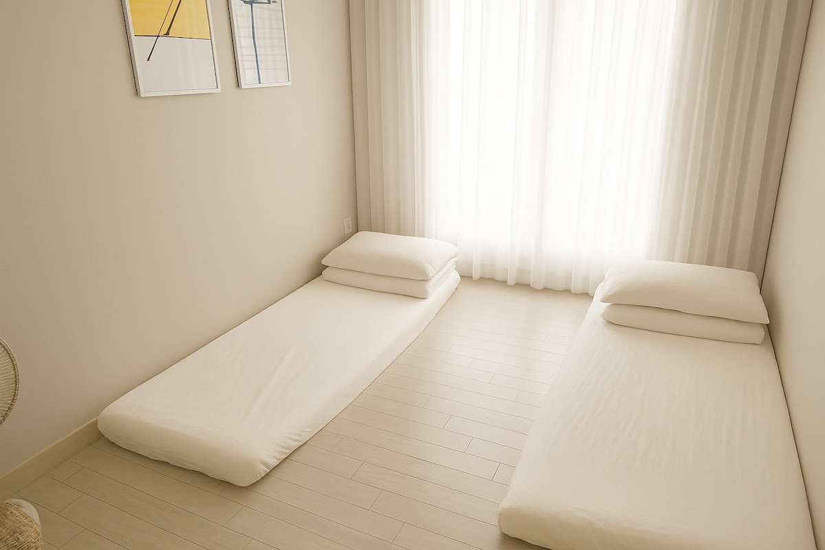 🥭這是Mangone。 所有房間都是唯一的4人寬敞的房間 露臺酒吧將是最好的海景🏖️,也是您最好的茶🧋點。 大樓大廳前面就有10秒鐘的海灘,大🏝️樓旁邊有兩個地方就有便利店。 🛏️這是一間雙房和一間客房(加大雙人牀)第二間客房(雙人牀)寬敞的高級牀,提供舒適的睡眠。💟 客廳有一張可供4人入住的餐桌🍽️。 茶和零食、葡萄酒、威士忌等。 提供(葡萄酒。威士忌。 Soju眼鏡) 準備好了 烹飪用具已準備就緒。不可能做些什麼 烤肉(生肉)。 魚辣、蒸蟹等的氣味不會消失。 請理解,房客無法入住。 整個房間都可以欣賞海景,您可以從餐桌的客廳🌊窗戶欣賞海景~在房間露臺上的🌅第一間客廳欣賞日出。待會見🙏🏻