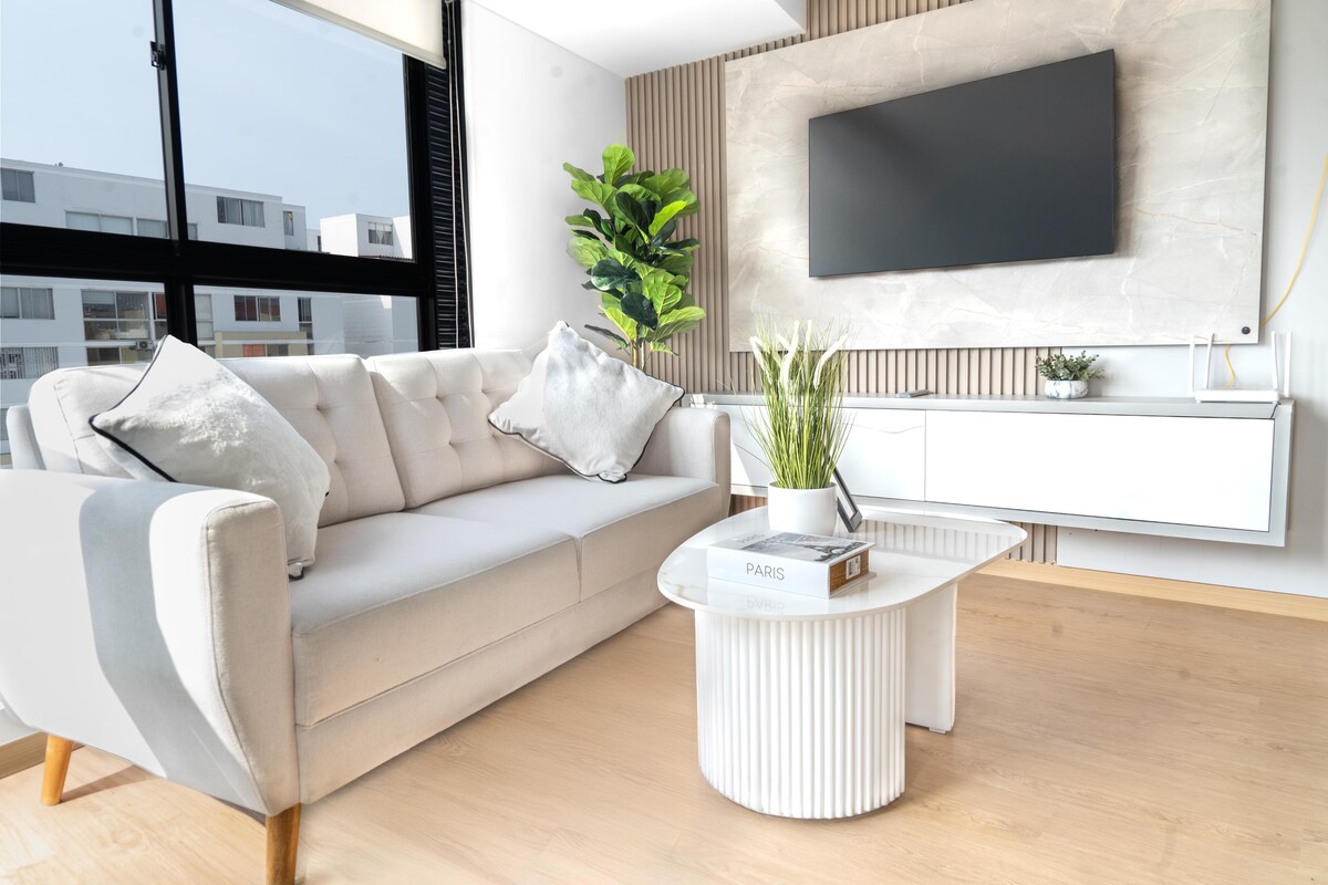 Hermoso Apartamento de Estreno en plena Avenida San Felipe con: -Sala acogedora con muebles cómodos y una vista espectacular, perfecta para relajarte. -Kitchenette totalmente equipado con electrodomésticos modernos. -Lavandería integrada con lavaseca para mayor comodidad. -Baño completo con agua caliente y todas las comodidades necesarias. -Dormitorio cálido y luminoso, con una cama cómoda. -Balcón con una vista increíble de la ciudad. Ubicado en una zona estratégica de Jesús María.