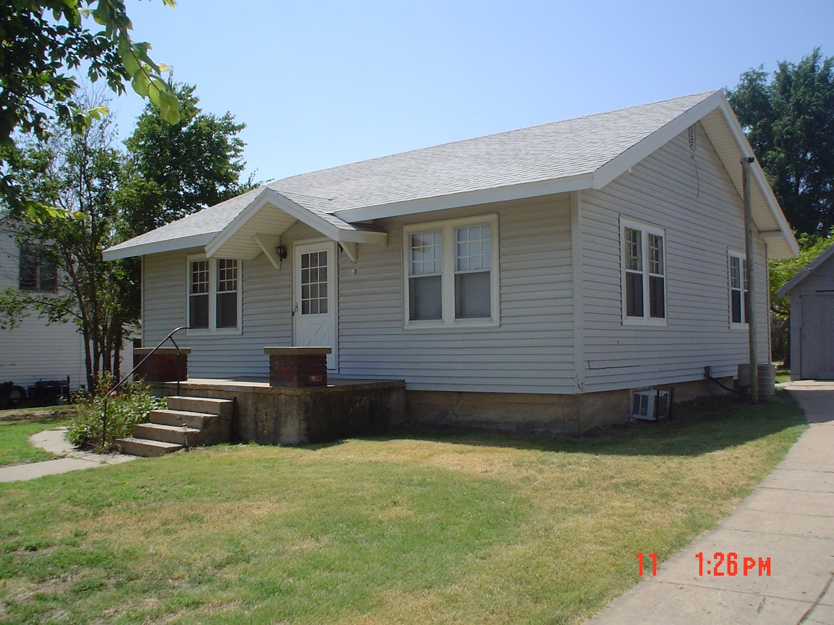 !!!PLEASE DO NOT BOOK A STAY LONGER THAN 2 WEEKS WITHOUT PRE-APPROVAL!!! Be warm. Be welcome. Be at home. Take a short 30 minute drive off Interstate 70 & enjoy a quiet small town stay in this recently renovated charming bungalow. Spend a day exploring our Kansas history with local forts, cattle trails, lakes, churches as well as local & nationally acclaimed museums. Spend the evening enjoying the cicadas & lightning bugs during the summer, the crickets during the fall.