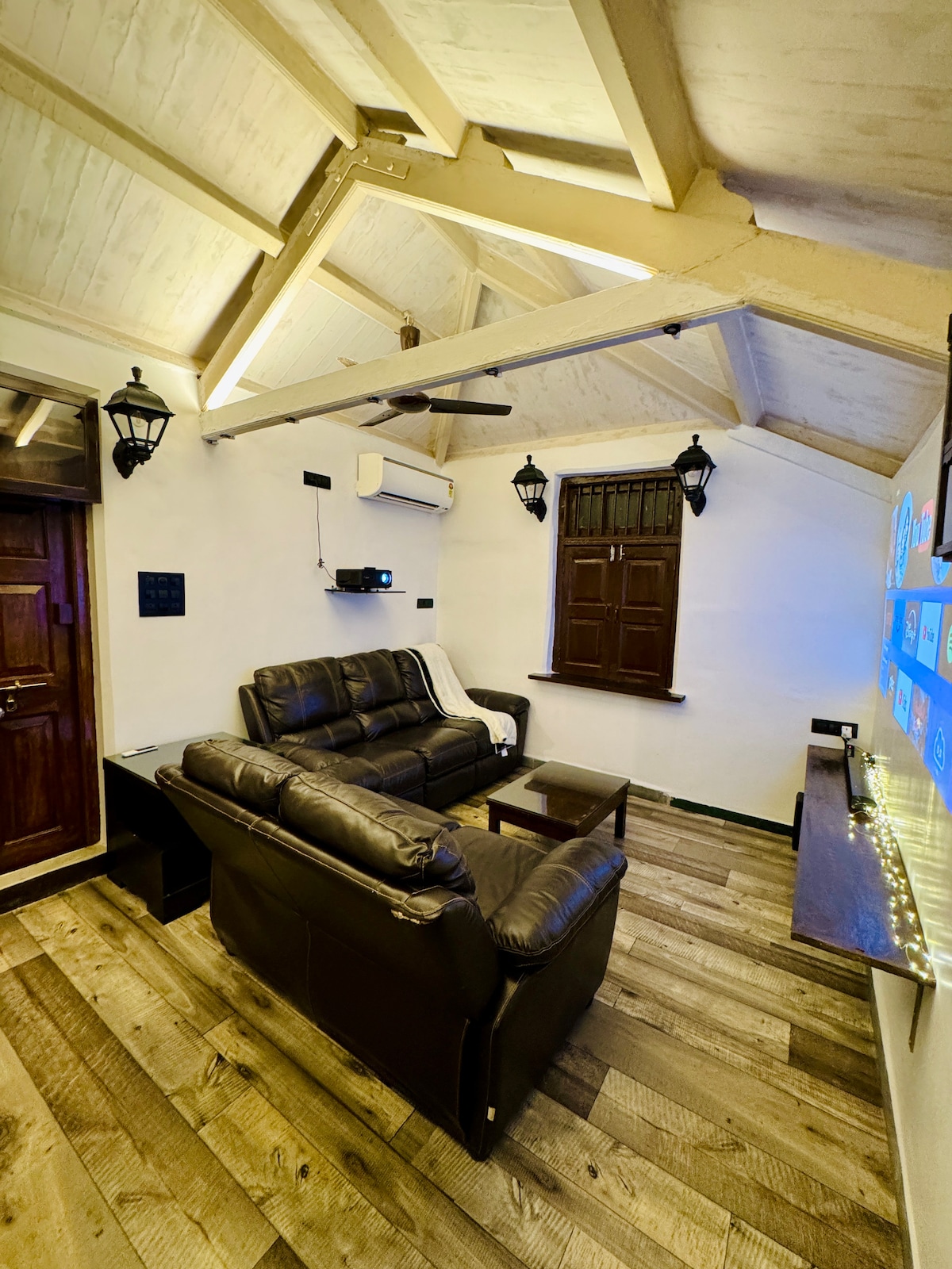 A newly renovated house . One bedroom, hall and kitchen . This entire house belongs to the guest. The highlight of the house is the platform style bed with a European touch to it . The designing has been inspired from the European houses . The furniture has a natural wood finish .It has bar table with high chairs where one can enjoy tea , coffee or wine . One can also use bar table for dining or chit chatting over tea coffee or wine . There are 2 split Acs , one in bedroom and another in Hall .