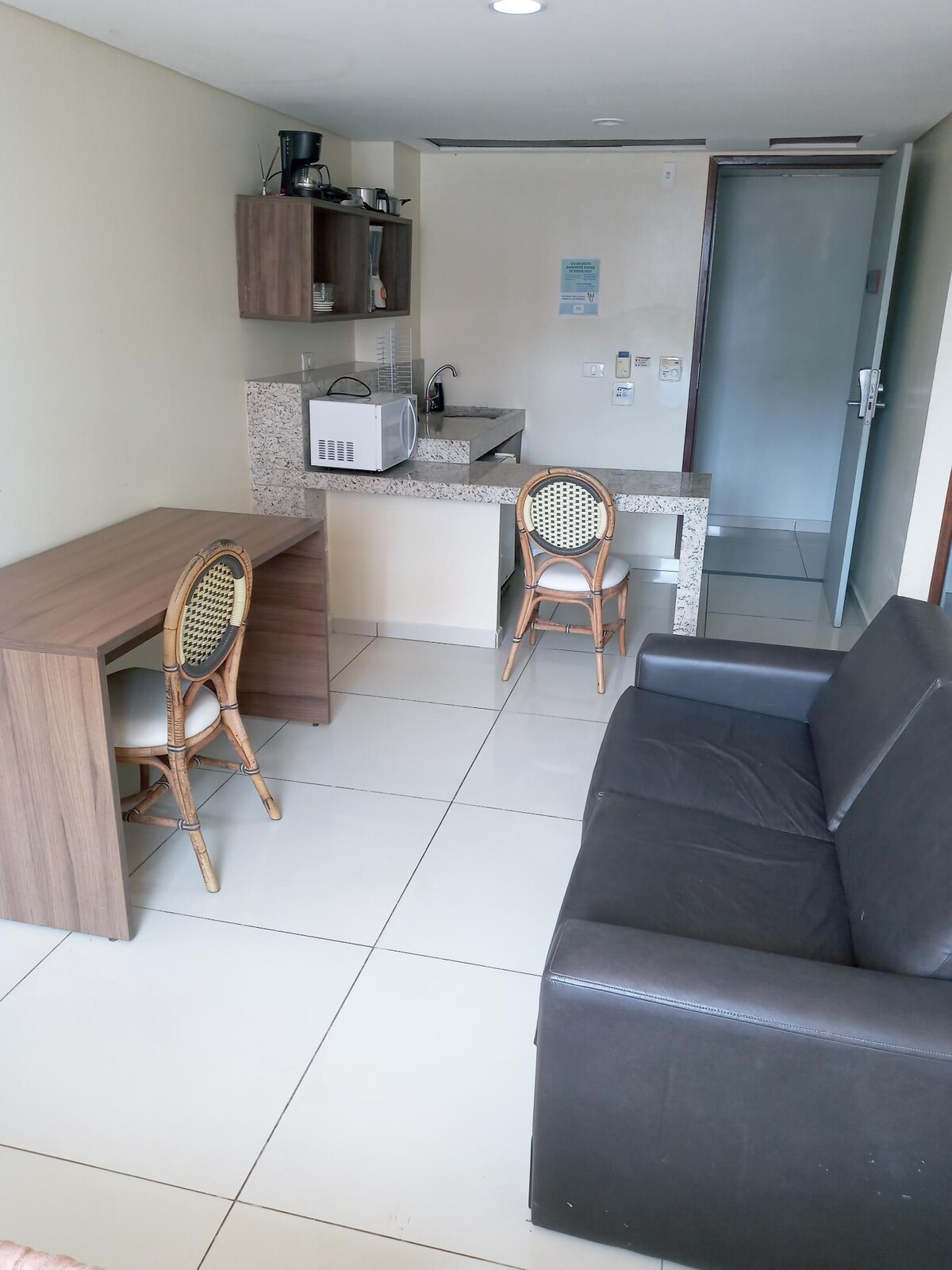 33平方米的公寓,大樓面向João Pessoa的主要旅遊大道。 我們有24小時禮賓服務、車庫、皮艇、單車、燒烤、按摩浴缸、游泳池、健身中心、餐廳/咖啡廳、共同辦公和洗衣服務。 我們的單位有空間可容納輪椅。 空調、爐具、冰箱、微波爐、三明治機、餐點準備用具、寬敞的浴室、吹風機、衣物蒸發器。 大床、單人床和額外床位。
