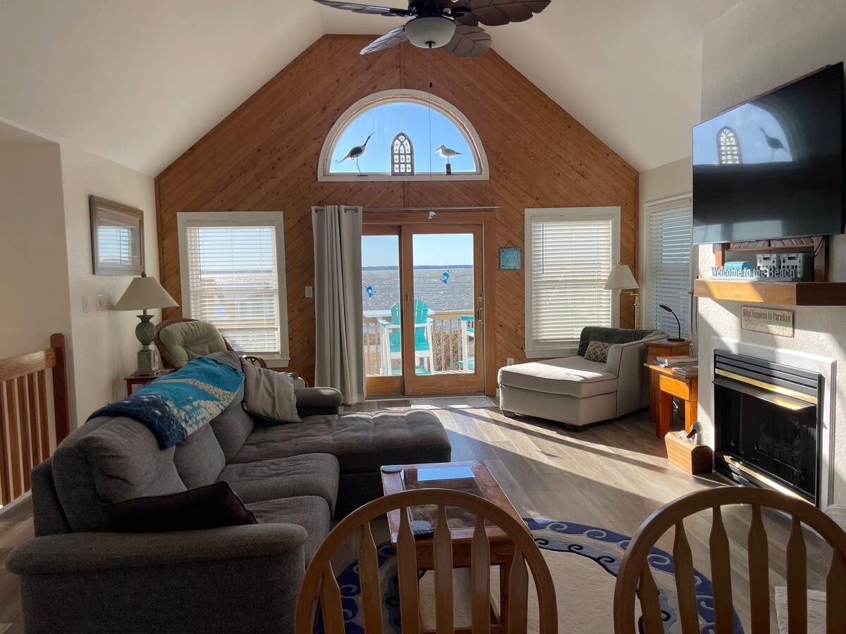 在這個舒適的海灘小屋享受您的OBX假期。 有一間大型家庭房、現代化廚房和用餐區域,有很多舒適的座位、55 吋智慧電視,並可使用我們的 YouTube 電視訂閱和高速 Wi-Fi。有私人遮蔭門廊,可從起居區和主臥室進出,包括一張野餐桌,可供室外遮蔭用餐和照明的休息區。 Tortugas 'Lie是一家很棒的當地海灘酒吧和餐廳,步行5分鐘即可抵達。
