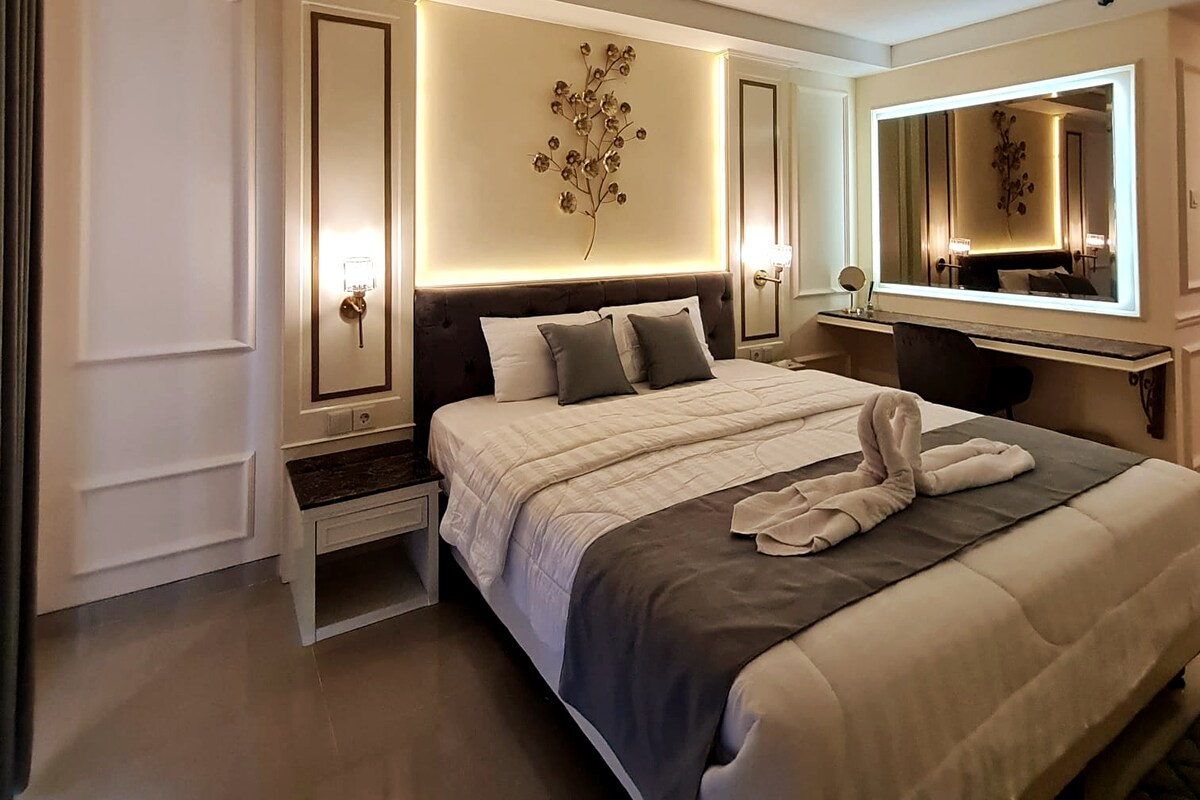 您的第二個家。獨特設計的舒適單間公寓,可供2位房客+ 1位小孩入住。房間配有1張雙人床、現代化的浴室、配有基本烹飪設備的廚房和陽臺。 免費停車、泳池、健身房、大堂區域、咖啡廳、餐廳、洗衣房和迷你市場。 設施: - 55 吋智慧電視 - WiFi -空調 - 熱水淋浴 -冰箱 -微波爐 -電爐 -水壺 -廚房水槽 -基本烹飪設備 - 吹風機 - 熨斗 請注意: -不提供早餐