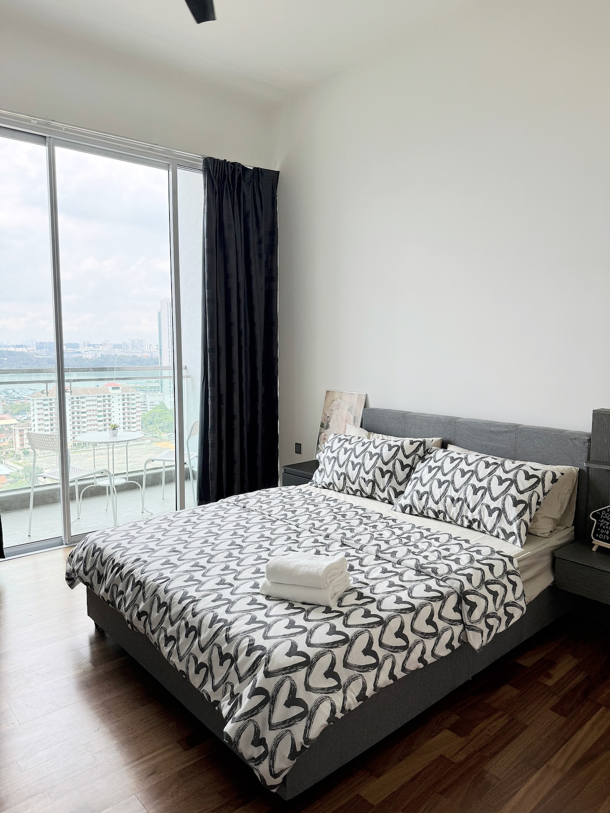 1間睡房+浴室+客廳和廚房 1張特大床單+不提供停車位。 (最多可入住4人,可提供2張額外的薄床墊) 由於安全問題,我們不允許烹飪,但已準備迷你電鍋和微波爐供房客輕鬆烹飪,例如即食麵、湯、沙拉等。 時尚的1臥室套房,距離新加坡-馬來西亞檢查站最近,7分鐘。 非常適合情侶/獨遊旅客/家庭旅行、工作住宿或城市探險。