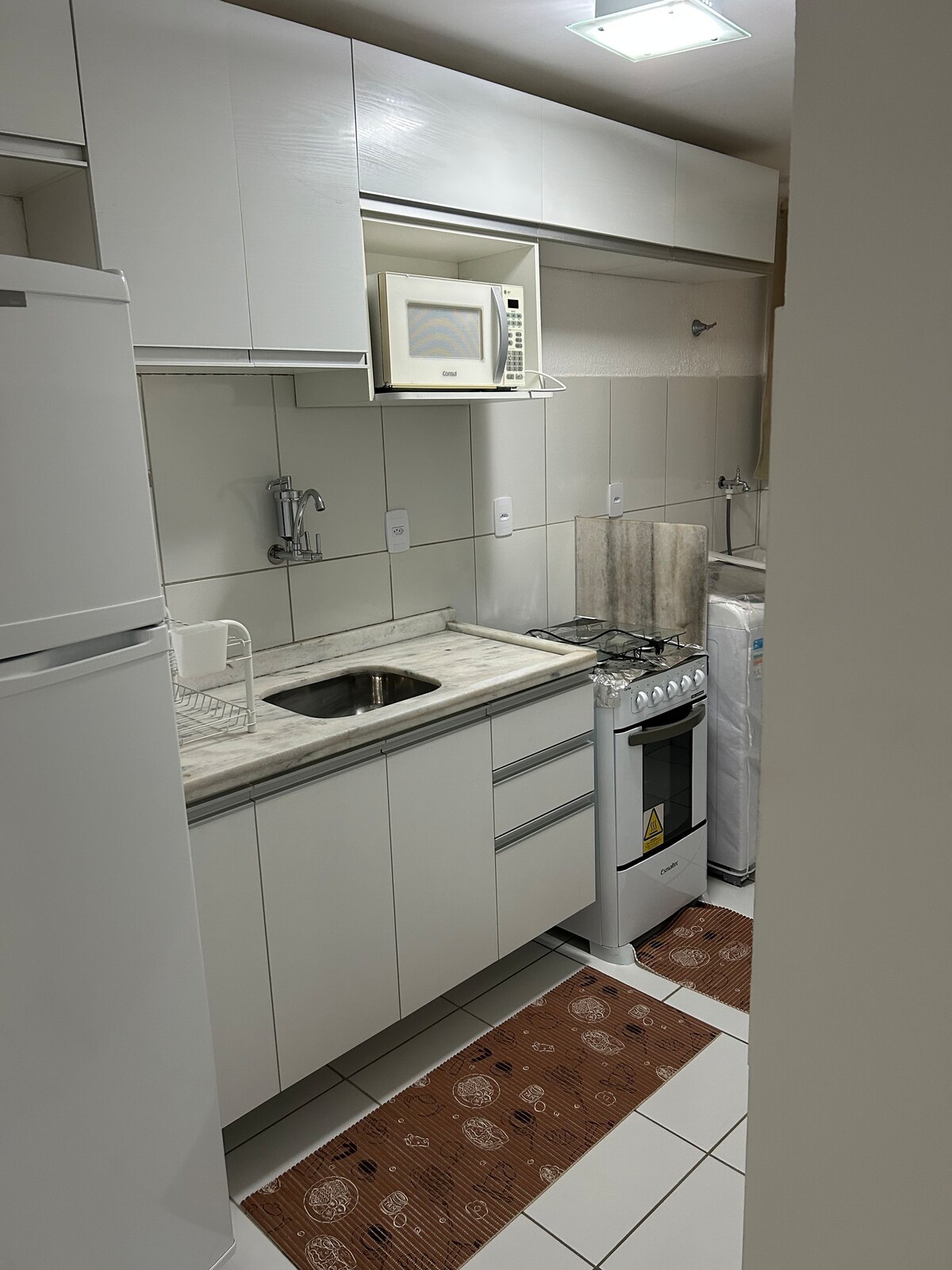 中央單間公寓,靠近幾家商店,步行即可抵達,如酒吧/餐廳、加油站、學院、超市、健身房、麵包店、洗衣店等。 面向軍警營的安全公寓,大廈外部區域設有閉路電視系統 靠近Unimed醫院、市中心、論壇、購物和海濱 單間公寓配有冷氣、一張大床、智能電視和一間可準備餐點的全套廚房。 可容納8輛車的車庫