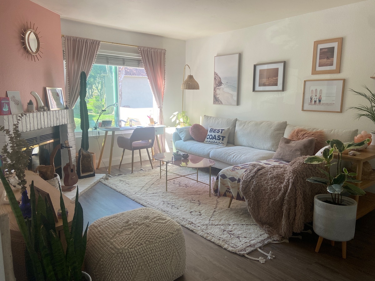 現代化的2BR/2BA公寓,距離加州聖馬科斯州立大學僅幾步之遙。 每間睡房都有自己的私人浴室,以保障私隱和舒適。 享受明亮的起居空間、設備齊全的廚房和專用車位。 包括免費咖啡、茶和汽水。 非常適合尋找時尚、方便的基地的學者、專業人士或朋友,靠近餐廳、購物、遠足,距離海灘只有短暫車程。 在這個位於市中心的地方享受時尚體驗!