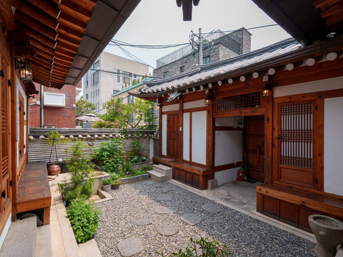 你可以獨享整間旅居。 我與家人住了40年的空間在2012年進行了維修,現已投入使用。 有一個寬敞的院子和一個精心栽培的花園,所以如果你坐在屋頂上,你可以享受一個安靜和慢的時間與廣場的天空。 有3間臥室、1間浴室和一間寬敞的廚房。 2間臥室有2張大床,與客廳相連,空間寬敞。 第三間是一間小房間(愛情房),有獨立入口。 可提供額外的床上用品,需額外收費,我們保證使用工作坊製作的厚棉毯,讓您舒適地休息,因此請聯絡我們。(最多6人) 我們準備了迎賓茶和簡單的茶點。 我們準備了無咖啡因茶(豆茶),因此無論何時都可以享受茶道。 步行10分鐘即可抵達景福宮站2號出口,是<現代汽車中心>巷的第二間房屋。 主幹道和巴士站很近,因此您可以輕鬆前往通仁市場、西村、藍宮、景福宮和三清洞。