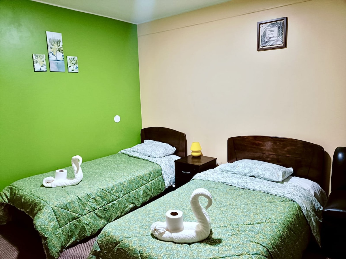 我們的行政套房位於Huancayo市中心,非常適合尋找溫馨氛圍的遊客和高層,他們的安全和舒適度是主要的。 我們有WiFi有線電視、Netflix、迪士尼、HBO Max ,小廚房q配有迷你吧、烤箱、攪拌機、水壺、廚房用具。 除了熱水和24小時保安 我們為您的健康制定了所有衛生規則 該地區的機場接送服務、洗衣和旅遊資訊。