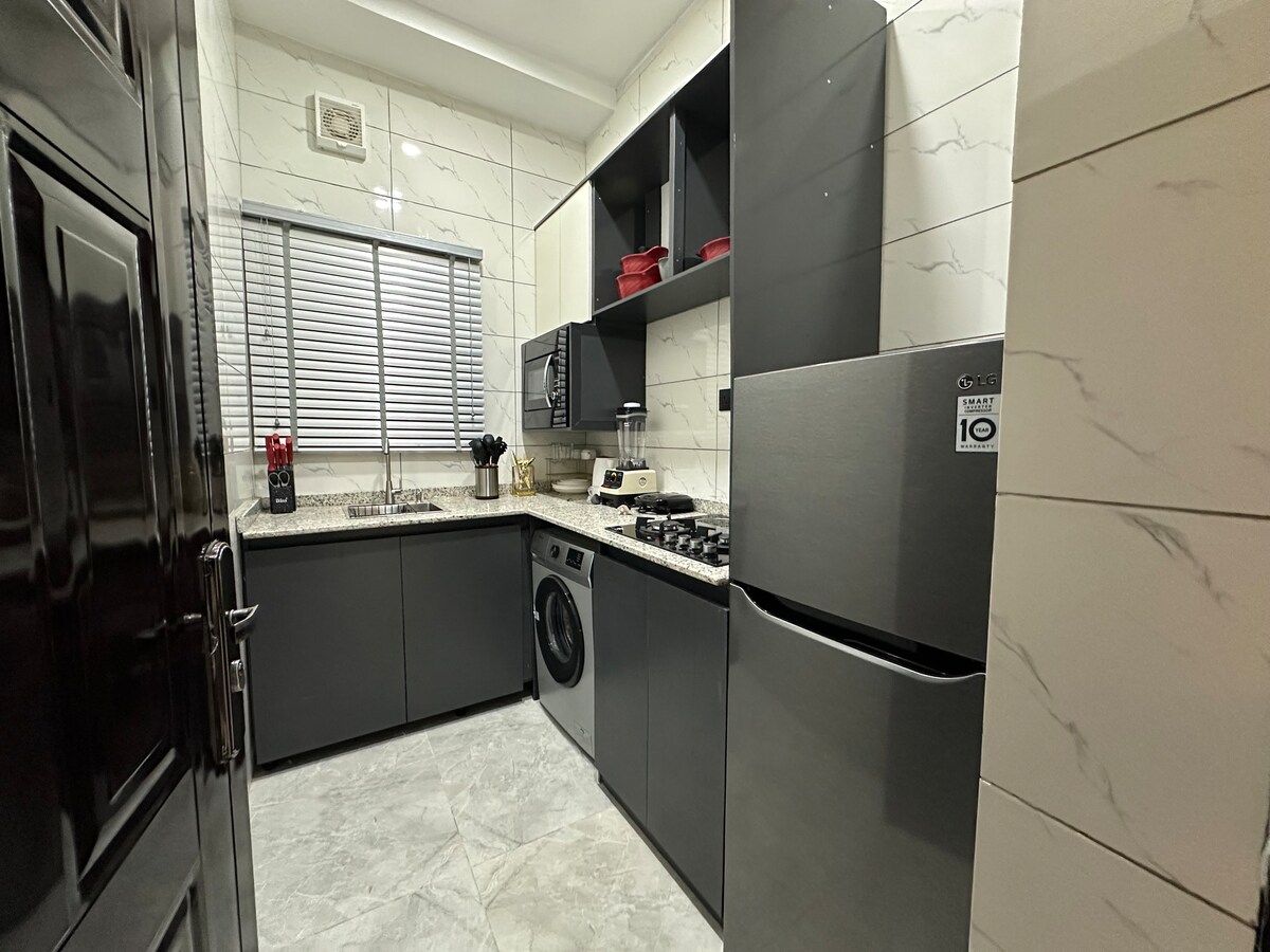 無論您是出差還是休閒,這間一房短期租賃都提供一個有設備的聖地,讓您感覺像在家一樣。 房源位於有門禁的安全房地產內。它有自己的圍欄、大門和周邊閉路電視,讓您完全安心。水和電力24小時全天候供應,備有逆變器和發電機。清潔服務根據您的時間安排提供便利。 您將對這個獨特空間的奢華和舒適感到滿意。