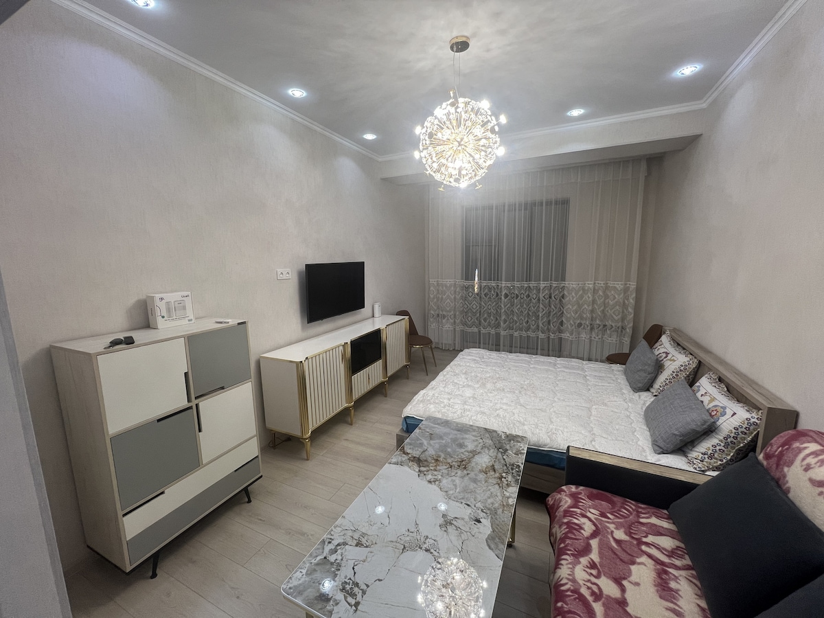 位於市中心,家具齊全,全新公寓,步行即可抵達布哈拉舊城區(15分鐘/1.4公里)。 獨享整間旅居,在旅程期間自行烹飪、洗衣和休息。 享受這間寬敞而現代化的公寓。 1間臥室、1間浴室,配有洗衣機。 寬敞的客廳,配有可供2位額外房客使用的沙發床、帶冰箱、烤箱和其他基本電器的廚房。