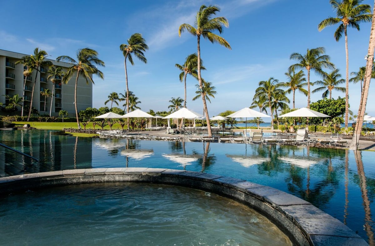Kona Coast是一間度假屋,面向太平洋,坐落在21英畝的鬱鬱蔥蔥的海濱!距離雜貨店、餐廳和商店僅0.5英里。 這些是我們的分時度假週,我們可以使用1或2間臥室的公寓。 也就在Alii Drive的6英裏歷史步道上,探索海灘、浮潛、衝浪、世界一流的餐飲、高爾夫球和購物以及令人難以置信的日落! 度假村設施豐富,包括2個泳池( 1個是海景) , 2個按摩浴缸、冠軍網球和皮克球球場