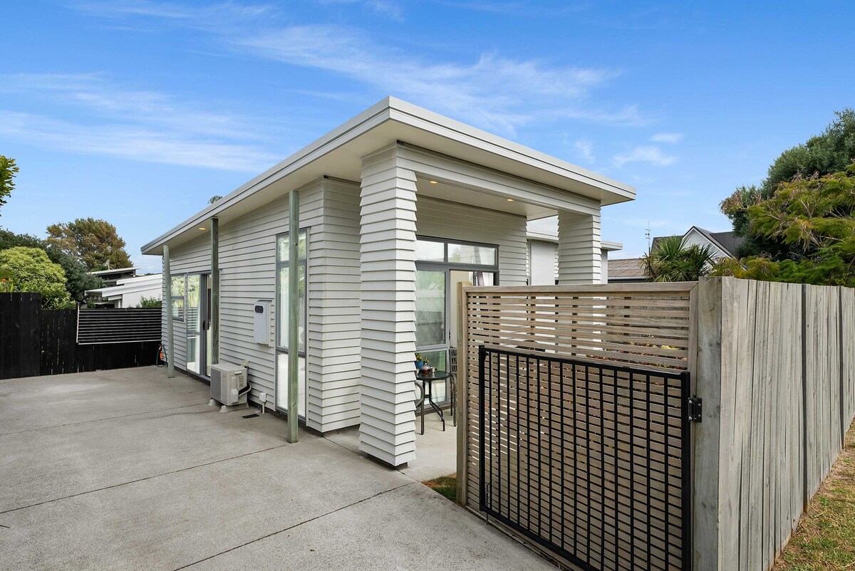 Stylish, light-filled studio in a quiet cul-de-sac, just minutes from Papamoa Beach 🏝️. Relax in a comfy queen bed with luxe linen, enjoy a modern bathroom, aircon, 42" smart TV, and a well-equipped kitchenette with cereal, coffee & treats. A futon sofa converts to a double bed for extra guests. Work with fast Wi-Fi, unwind on your private grassy lawn, or stroll to the sand. Safe off-street parking makes arrival easy. You’ll find everything you need to relax, recharge, and feel at home.