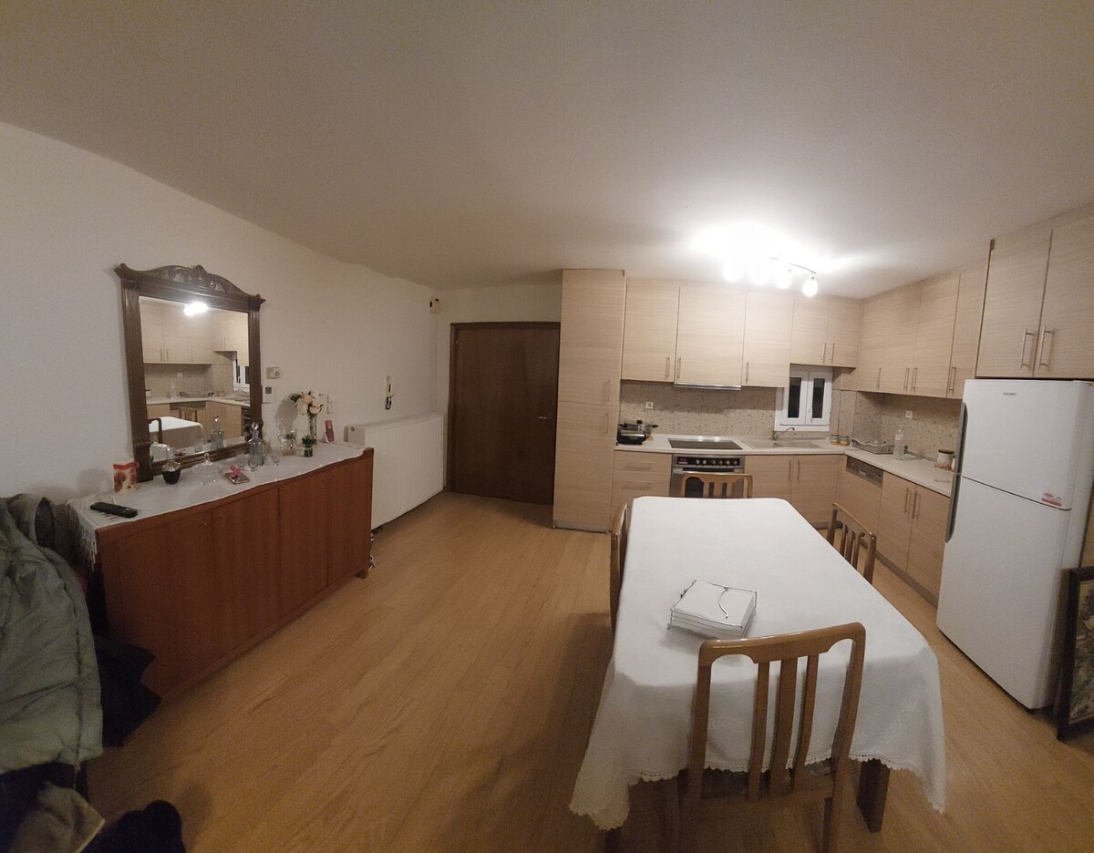 房源位於卡拉馬里亞區(乘坐巴士 20 分鐘即可抵達市中心)。它位於一樓,有一個安靜的庭院,可俯瞰戶外。設有設備齊全的廚房和帶洗衣機的浴室、大客廳和兩間寬敞的臥室。可輕鬆容納 4 人(一張雙人床和 2 張單人床)。這是一棟小型公寓,我住在兩層樓上,可以隨時為您提供協助。
