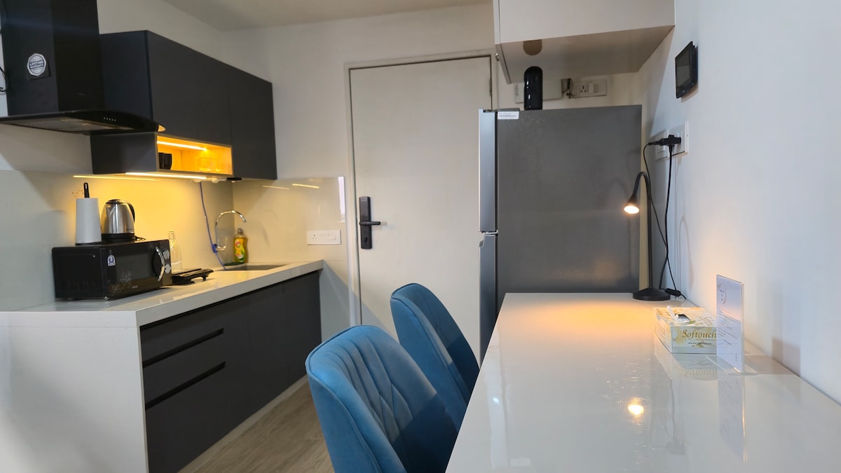 Welcome to Pune Airport's Finest Lounge Studio, a thoughtfully designed studio apartment in Viman Nagar, just minutes from Pune Airport. Get a peaceful nap with a cozy king size bed, luxe interiors. Thoroughly cleaned and a peaceful space. Unwind with coffee breaks in the ambient lighting, and a peaceful vibe that makes every layover or stay feel effortless. Perfect for business travelers, couples, or anyone who loves a stylish pause before takeoff.