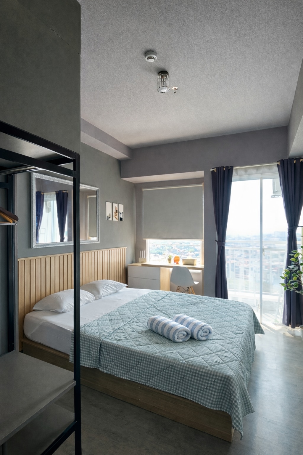 一套完整的單間公寓,配有舒適的床、專用工作空間和高達200 mbps的網速。 + 24小時自助入住和退房 + 高速網絡,速度高達 200 mbps。 +書桌和2張工作椅 +設備齊全的廚房 房源位於Citra Living公寓, 17樓。 距離Soekarno-Hatta機場僅15-20分鐘。 步行2-10分鐘即可抵達超市、洗衣店、許多當地美食攤位和24小時連鎖餐廳。 系統會自動計算折扣。