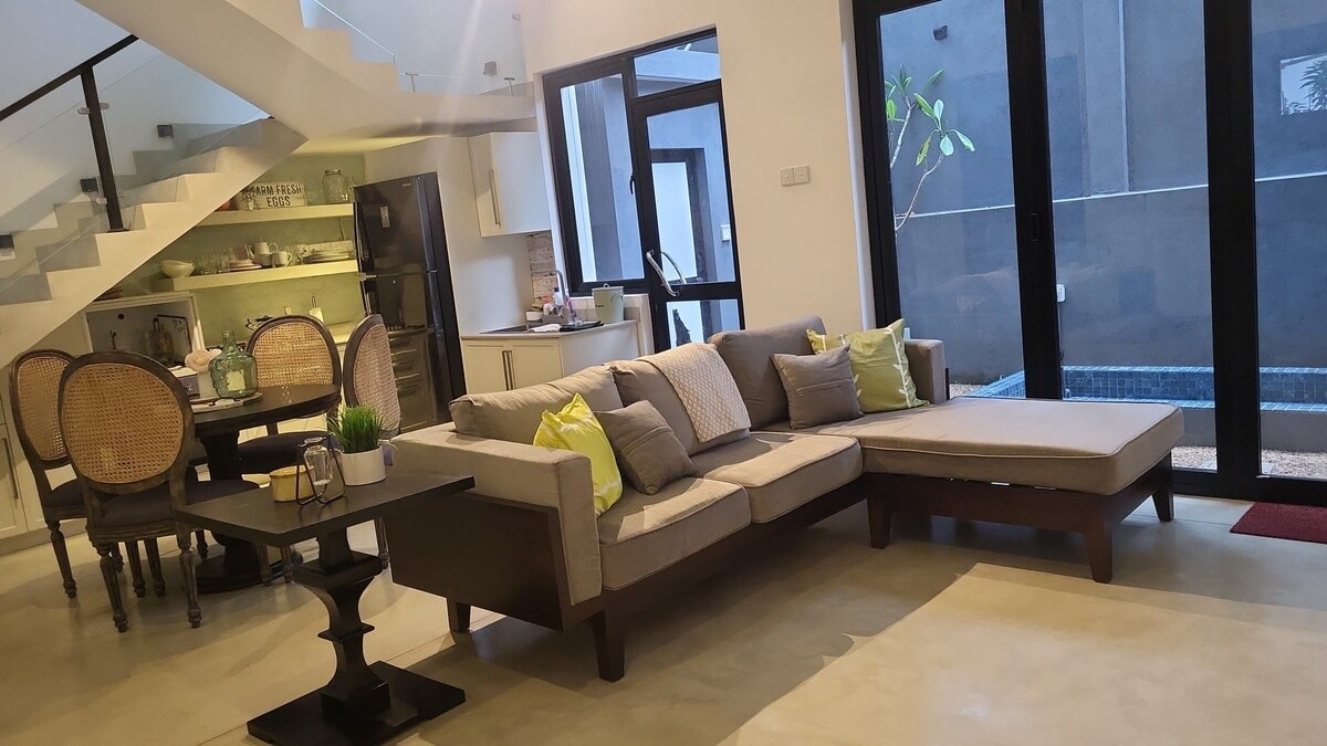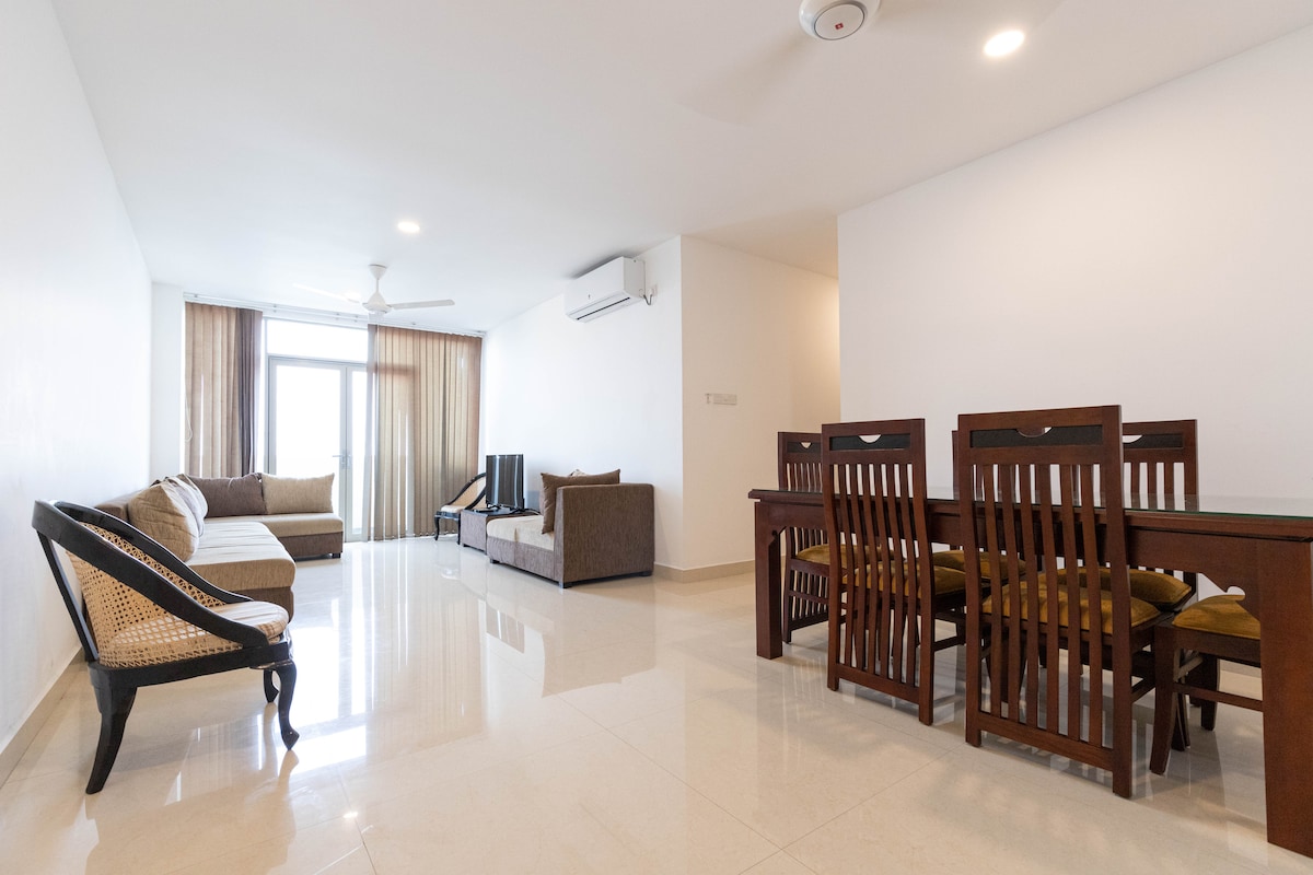最多可容納4人:適合家庭、情侶和女士入住。 兩間配備空調的臥室、套房衛浴(有熱水)、舒適的客廳、餐廳、廚房、WiFi、獨立入口和一輛車的停車位。 輕鬆前往公共交通工具、機場(約1小時)和科倫坡市中心(約20分鐘)。步行5分鐘即可抵達超市和商店,開車5分鐘即可抵達餐廳。