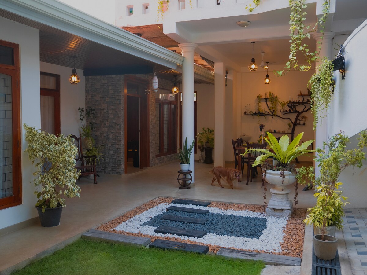 Shaa Haven是寧靜、舒適和真正的斯裏蘭卡待客之道。 這片隱蔽的綠洲是一個寧靜的度假勝地,同時讓您靠近這座城市充滿活力的活力。 豪華臥室為您提供了一個安靜的度假勝地,鳥鳴聲讓您喚醒您。 設有寬敞的起居空間、設備齊全的廚房和寧靜的庭院。 此外,我們的毛茸茸大使Puppy會搖晃地迎接你! 此外,後院的雞更是為旅居增添了歡樂的氣氛。 地理位置優越,距離科倫坡市中心僅20分鐘