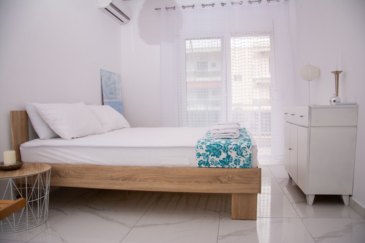 距離海灘200公尺,有停車位、空調、WiFi、新電器、新床墊和床單。在一個安靜的建築群中,步行即可抵達超市和商店,距離波利吉羅斯市16公里,距離穆達尼亞市12公里,距離尼基蒂村25公里。位於卡桑德拉和西索尼亞之間,是探索哈爾基迪基半島的完美地點,無需長時間開車!