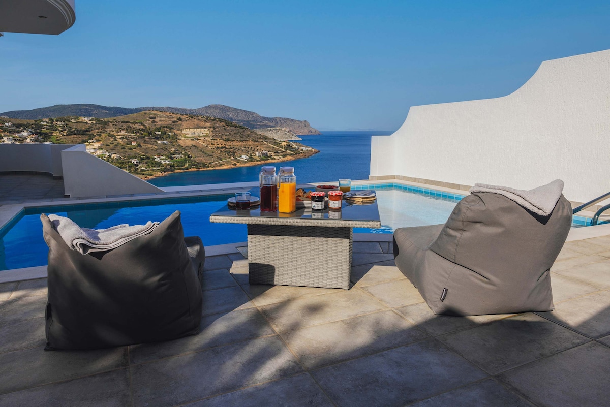 Seafront Hillside Villa with Outdoor Pool