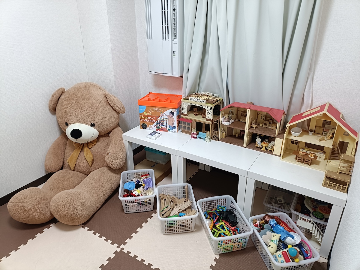 當只有年輕人入住時 公寓居民一定會因噪音而投訴,因此我們可能會拒絕 請勿舉辦派對或飲酒會 這是二樓的房間 3DK的漂亮房間可供1個團體包下,讓您有寬敞的使用空間 最多 5 人,無需額外費用! 因為離車站很遠,所以價格比較便宜 內部的停車場也是免費的 房客服務費不是我設定的 而是房客支付給 Airbnb 的行政費用 我只收取住宿費和清潔費 日式房間可以鋪設 3 組日式床墊 有小孩的家庭可以放心使用 另一間臥室有2張舒適的床 衣櫥內還有備用的折疊床 另外也有兒童房 有很多玩具! 這裡也可以鋪2組布團 最多可供 7 位成人入住 如果孩子可以和父母同床,可以多住幾個人 設備也很充足 生活所需一應俱全