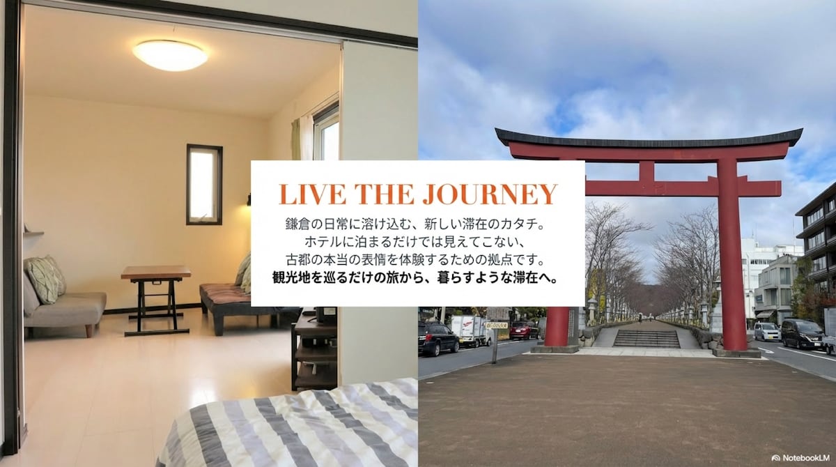 隐于古都 · 山海之间·镰仓闲居 亮点特色 独立小院 本馆共两层结构,一楼设有四间独立客房,每间自带绿植环绕的小庭院。 无论是夜晚星空下的畅谈,还是清晨的咖啡时光,都别有风味。 全新装潢,以地中海白与湖蓝为主调,搭配藤编吊椅与弧形窗拱,营造出轻盈惬意的氛围。柔软的沙发、温暖的阳光、轻轻晃动的吊椅,每一处细节都像是生活中的电影画面。 周边探索指南 小町通商店街(步行10分钟) 镰仓最具人气的购物美食街,汇聚和果子、咖喱面包、抹茶冰淇淋等美味,还有金属雕刻、猫头鹰互动、柴犬咖啡厅、宫崎骏主题店等特色体验。 鹤冈八幡宫(步行15分钟) 镰仓地标级神社,武家文化的象征。文化与自然交融,是拍照与祈福的绝佳场所。 由比滨海岸(步行约15分钟,骑行5分钟) 白沙如银,浪声拍岸。清晨适合散步晨跑,傍晚则是观海看日落的好去处。 CIAL镰仓 & 便利生活圈 CIAL商场(镰仓站内):餐饮、超市、书店、纪念品一应俱全 7-Eleven & FamilyMart:步行3分钟即有便利店 东急Store超市:日用品采买便捷 服务说明 支持行李预存 全馆提供免费Wi-Fi 自助入住,灵活便利