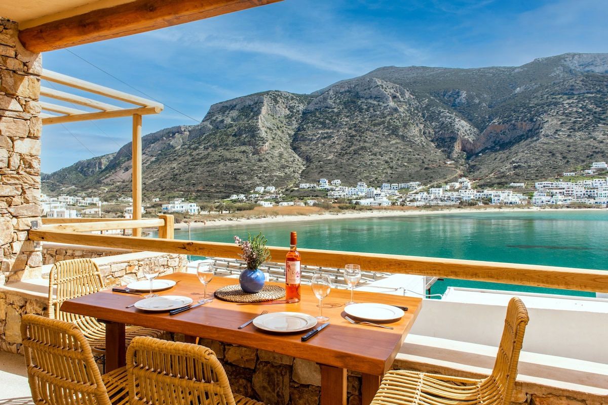 在舒適的陽台上欣賞西夫諾斯島海灘和港口的獨特景色,並在舒適的空間中放鬆身心。您可以欣賞日落的美麗色彩,並在獲得藍旗認證的海灘上享受清澈的海水。卡馬雷斯是一個應有盡有的地方!您可以找到餐廳、咖啡館、超市、商店、遊樂場、5X5球場。
