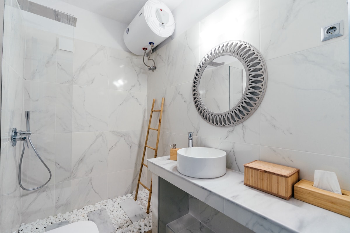 Bonsai suite is a hidden gem, close to the city center and the crowd but also so peaceful. It's just 1km away from Fira's main square, the capital of the island. Located in one of the most traditional villages, very close to bus stations, restaurants and landmarks. Relax at your private jacuzzi and enjoy the view! Daily breakfast can be served in the suite (with an extra cost) and free parking is offered.