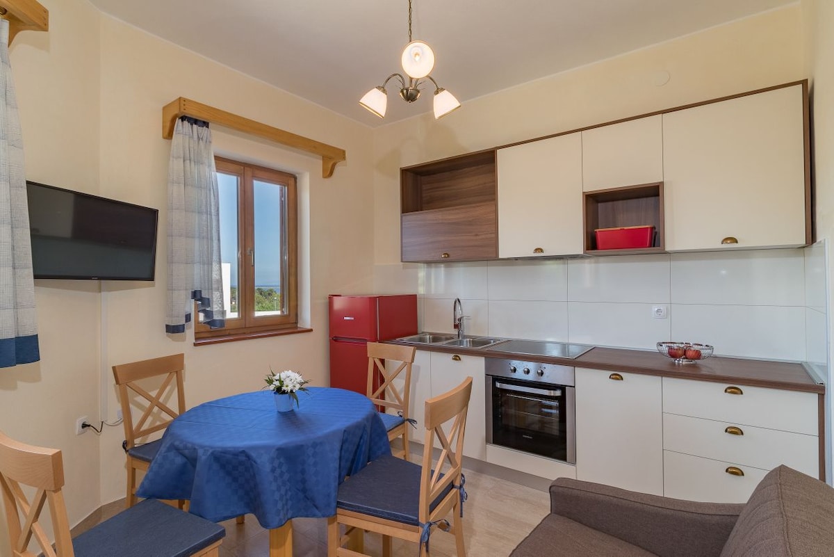 距離第一個海灘: 100公尺(步行約1分鐘)。 Beach House Villa位於Premantura村莊的安靜地區,從鬆樹公園開始。 房子周圍只有其他3棟房子。這套2號公寓位於一樓,大型60平方公尺私人露臺僅供此公寓房客使用。露臺設備齊全。