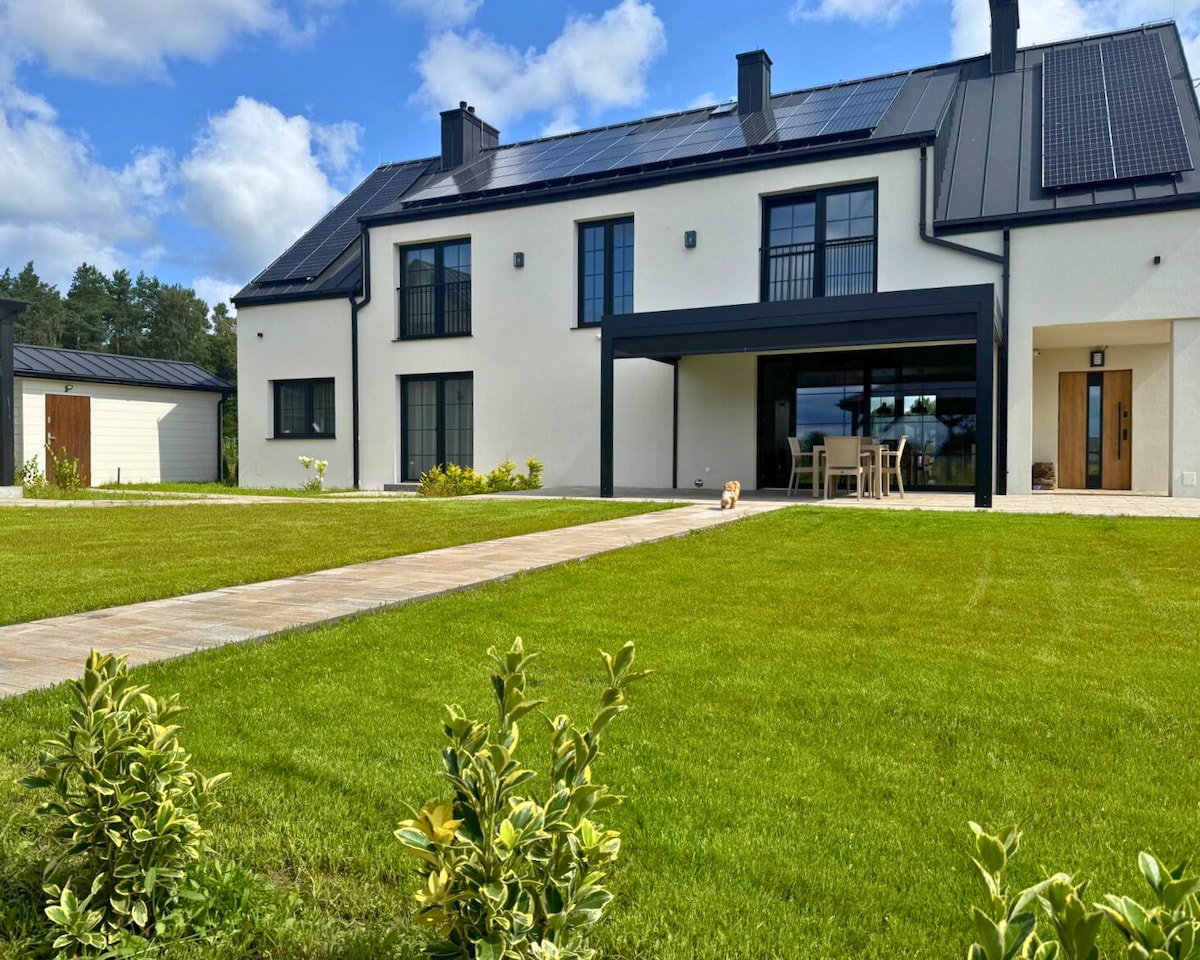 1500平方米的私人土地,遠離喧囂,您會感受到寧靜和舒適的魔力。 我們的142平方米房源提供4間獨立臥室、配有廚房的寬敞客廳、兩間衛浴和兩個迷人的露臺。 房子設計為現代農舍風格。 您可以在我們的桑拿房度過寒冷的夜晚,每個房間的空調都會令人愉快地清爽。 這不僅僅是一個家-它是一片寧靜、品味和舒適的綠洲。歡迎!