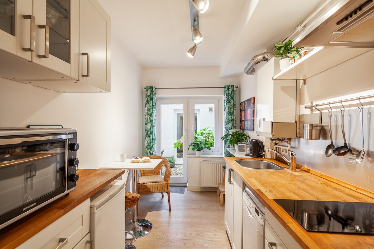 舒適的公寓,適合放鬆、吃飯、睡覺和工作。 安靜的後花園有自己的前門和露臺。物業內有私人停車位。附近有各式各樣的購物和休閒設施。 距離地鐵/火車 7 分鐘。直達中心地區。 - 到機場 +15 分鐘 - 火車總站 +9 分鐘 - 市中心/市政廳 +12 分鐘 - 港口 +16 分鐘 - 雷珀巴恩 (Reeperbahn) +18 分鐘