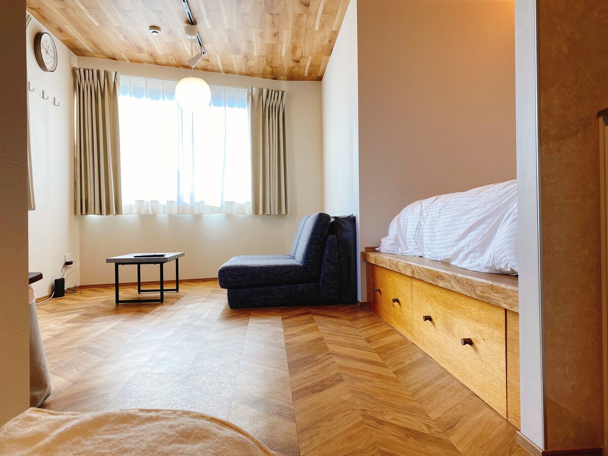Newly Reformed Feb 2026! Private apartment studio for max 3 people stay. Room Size: about 35㎡ Room layout: ・1 double bed ・1 sofa bed ・1 bathroom Hotel Facilities ・Shared coin laundry is available ・Private entrance for each unit ・No elevator, use stair only Weekly, Monthly and longer stay is available. ** No Front Desk / Self- Check-in with Door code **