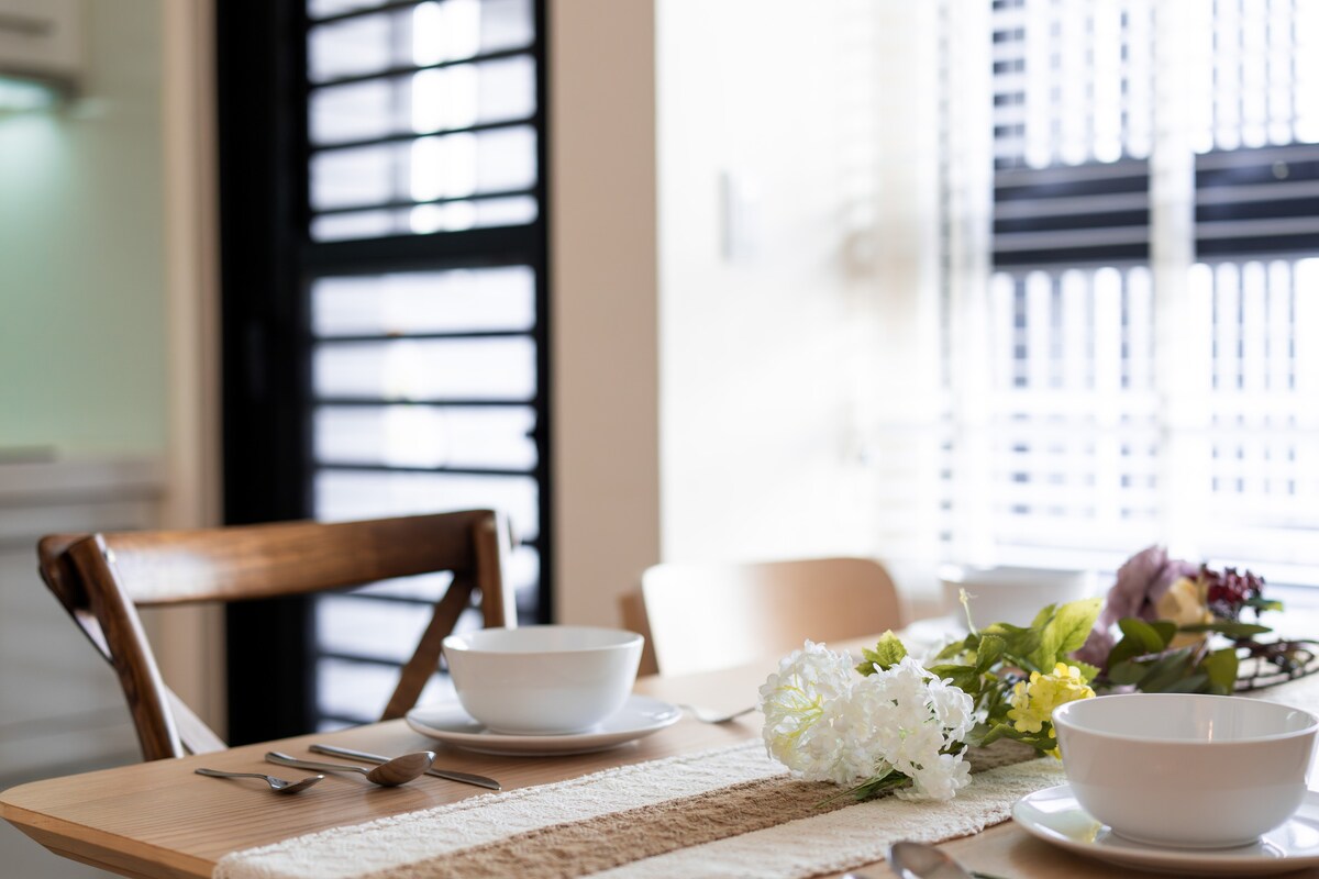 溫馨提醒:訂房前請閱讀以下,特別是房客使用權限,以免影響您的權益! ------------------------------------------------------------ Japandi 風格的一樓公寓,明亮、悠閒、舒適,一個最棒的紓壓空間。舊公寓改裝翻新,獨特自然溫暖氛圍,是一個旅途中有溫度且細膩的小天地,在這裡緩下步調、慢慢生活、品味旅行。 一樓室外能看到綠意盎然的前庭小花園,午後坐在客廳的沙發上,舒服的向大片落地窗望去,是一片陽光與綠意交織的悠閒時光,在夜晚成了談天說地的乘涼小花園。 擁有開放式廚房和餐廳,同時也是親子友善空間,相當適合三五好友和家族間的輕鬆聚會旅行,本房源由「好感生活提案」設計出品。 - 。每組客人離開後都會進行深度清潔及消毒,請放心居住。 。室內共30坪(100平方米),房間約2.5-3坪(8.3-10平方米) 。親子友善空間,提供多樣嬰兒備品,請事前預約。
