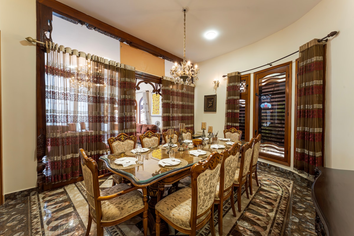 Furniture n decore smart, windows with views, blackout blinds and special amenities. Outdoor spaces ..have ur holidays with ur Family like ur own house with privacy full independent banglow.. with 24/7 host available for any help or question...maid facility available on request...24 hour guard outside for security... its time to Relax & Have Fun & make it a Memorable Trip Forever!!