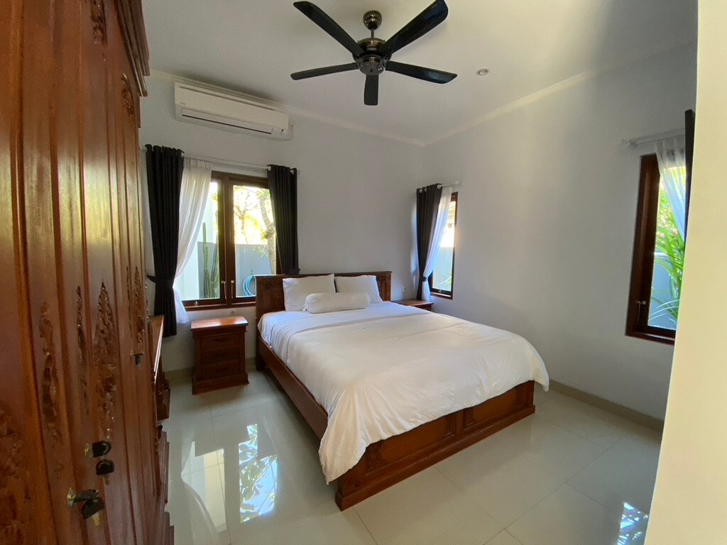 Your very own Beach House with a pool . Perfect for a family vacation, quality time with a group, or a romantic getaway. 3 bedrooms with AirCon, 3 baths. Swim in a 10-meter long pool, jump in the ocean. Some of the best diving & snorkeling on the coast just out the gate. Recline & rejuvenate in a variety of delightful private spaces, the bale with cushions & pergola and pool with sunbeds&hammocks. The owner/chef is renowned for having the Best Balinese food in Bali, served to you by the ocean.