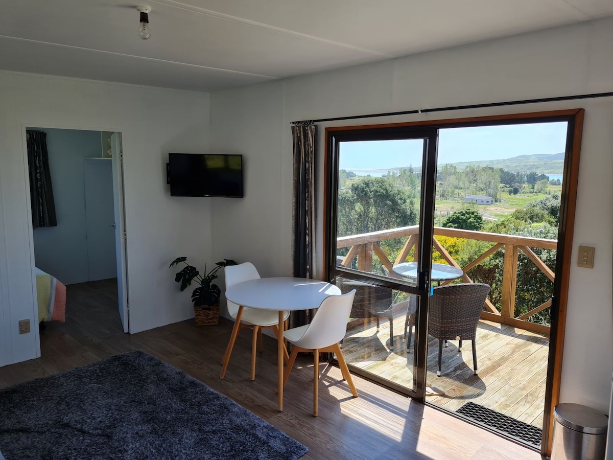 景觀迷人,朝北180度水景,可俯瞰拉格倫,這個1間臥室獨立單位,配有戶外陽光露臺和迷人的水景。位置明智,一切都在您的門口:步行10分鐘即可抵達2家很棒的當地咖啡廳(Rock-it Kitchen & Raglan Roast Food Department),開車5分鐘即可抵達主海灘,開車10分鐘即可抵達Manu Bay衝浪海灘,開車5分鐘或步行20/25分鐘即可抵達Raglan中心。探索拉格倫自然美景的週末度假的理想小基地。