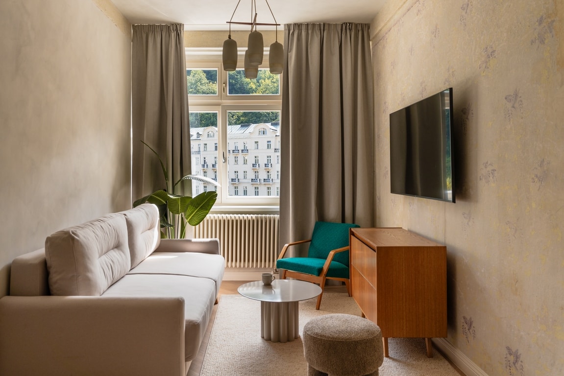 This apartment is the fusion of modern and vintage décor — true a reflection of the city's rich heritage and contemporary charm. But what truly sets this place apart is its location—it's nestled perfectly on the main street in Karlovy Vary's vibrant city center. From here, the city unfolds at your doorstep. Wander through the charming streets, or visit the city's famous spas. After a long day return to a chic blend of styles—a cozy place offering not just rest, but a retreat.