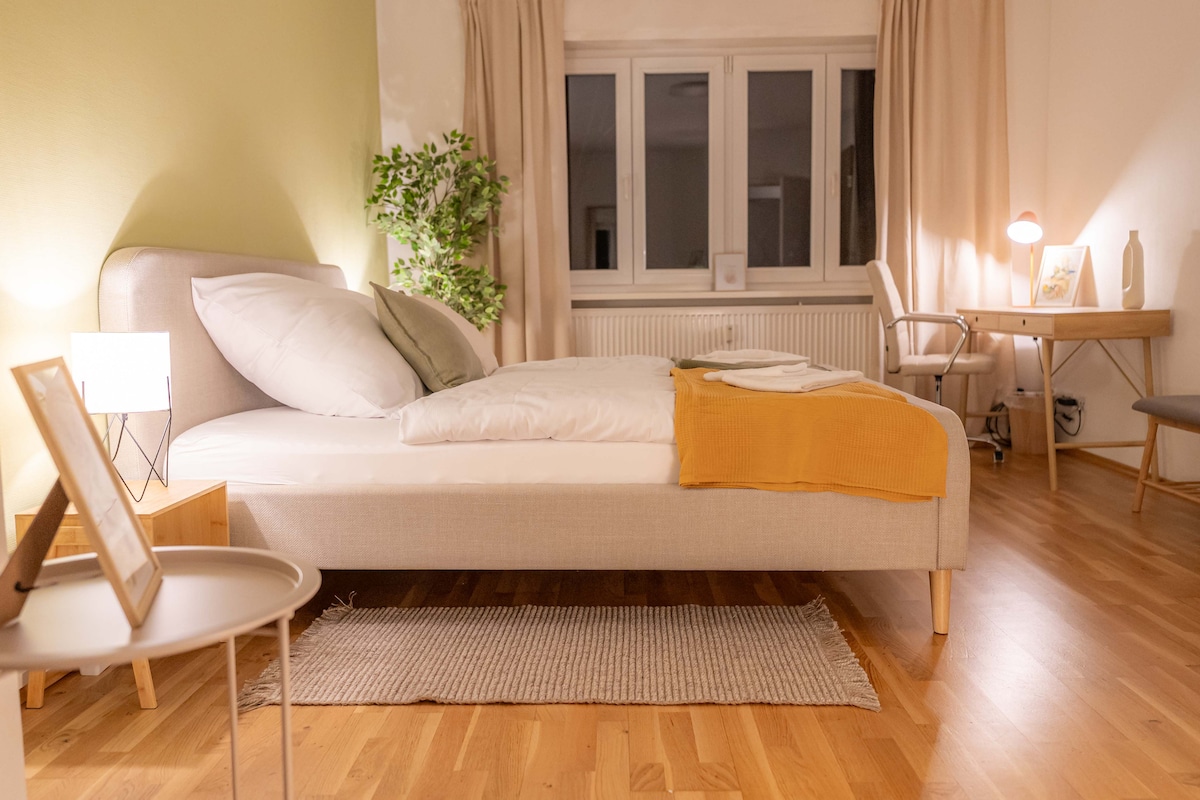News: From July 2025 - City Tax in Karlsruhe: 4 Euro/adult guest/night in 2026. Already included in the price! No extra payments necessary! Welcome to our renovated one bedroom apartment (in total 39m2) with walk-in closet in the heart of Karlsruhe - just 280 m away from "Marktplatz (Pyramide U)" Station! Everything you need for your comfortable stay is there. Shops, restaurants, cultural activities and many parking options around.