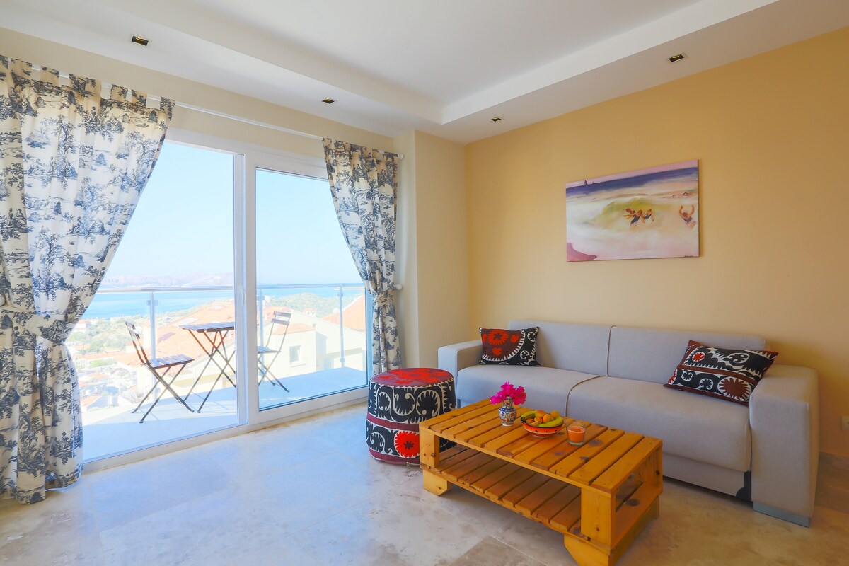 Hello! Our precious guests.. This apartment has a unique terrace (a special area only for you), offers a unique view of Meis (greek island), harbor mouth and sunset. Our rooms are air-conditioned and the importance and value we give to cleanliness are written in our comments. In addition, we have further strengthened our internet by thinking that you are working at home. We are not far from the city center, we can reach it in4 minutes by car.We have parking Thanks for taking the time to read