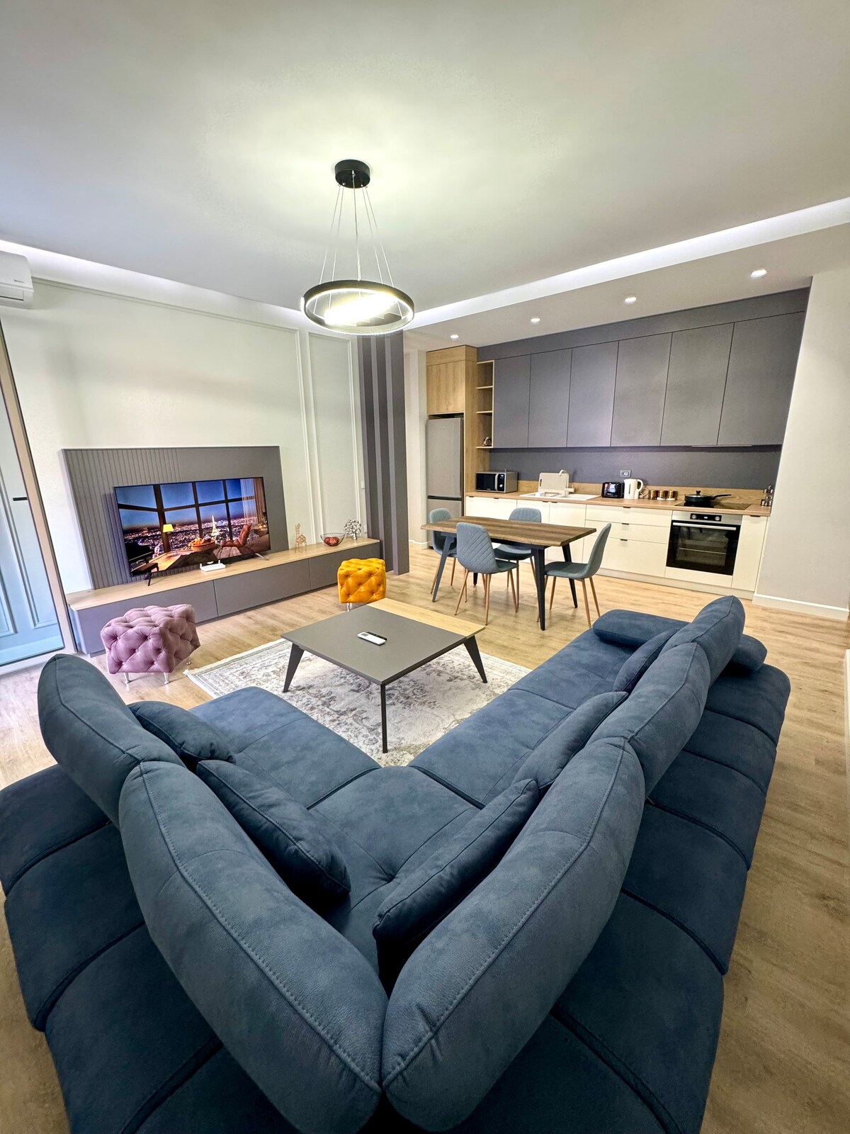 This 53 m² cozy apartment is located in the heart of Tirana, within 5 minutes walking distance from the main tourist attractions, central business and shopping centers, and the nightlife district. It is fully furnished with the idea of providing excellent comfort for a couple of guests. However, four people can be accommodated by using the two sofa beds available in the living room.