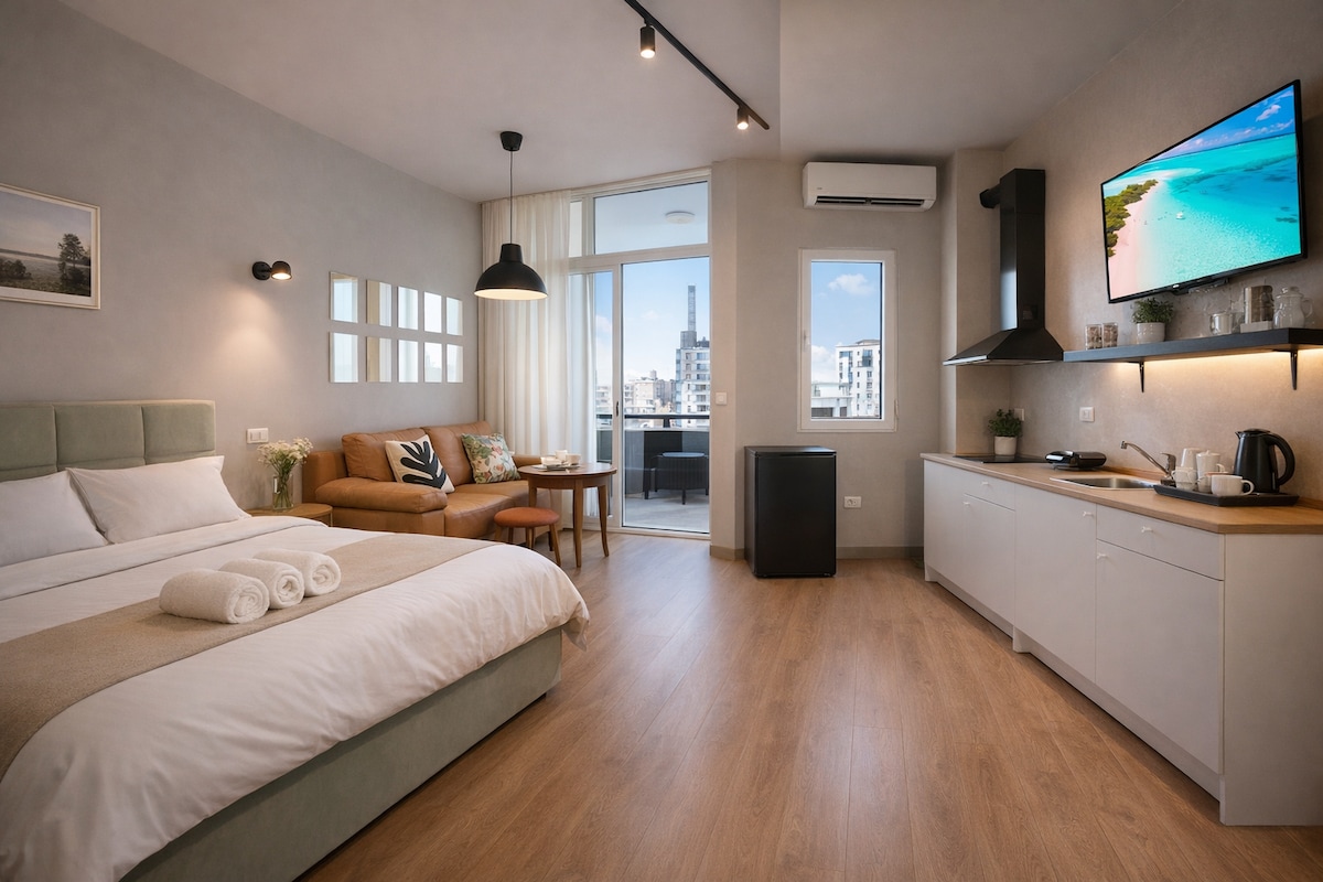 Modern Studio Main Blvd _Balcony • No Cleaning Fee