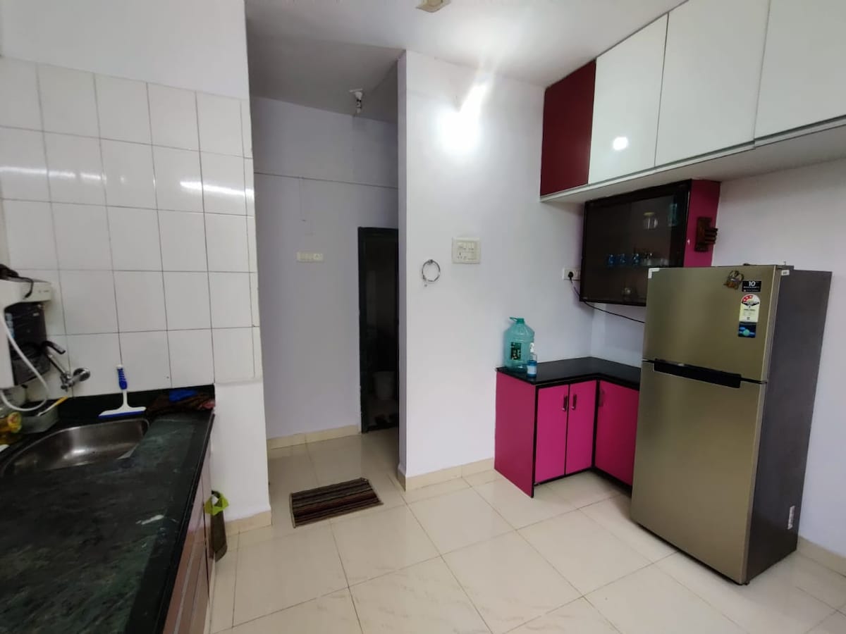 Cozy 1BHK, 8 mins from Mandwa Jetty—your lush green escape! Perfect for a breezy weekend, relaxing workcation, or longer stay. Sunlit living room, cloud-like queen bed, balcony for morning coffee, and a chic bathroom with rainfall shower. Fast Wi-Fi, iron, hair dryer, and essentials included. Unwind in quiet surroundings with beaches and cafés nearby, with Swiggy and Zomato delivering to the area for added convenience. Where work meets wanderlust—come recharge by the sea!