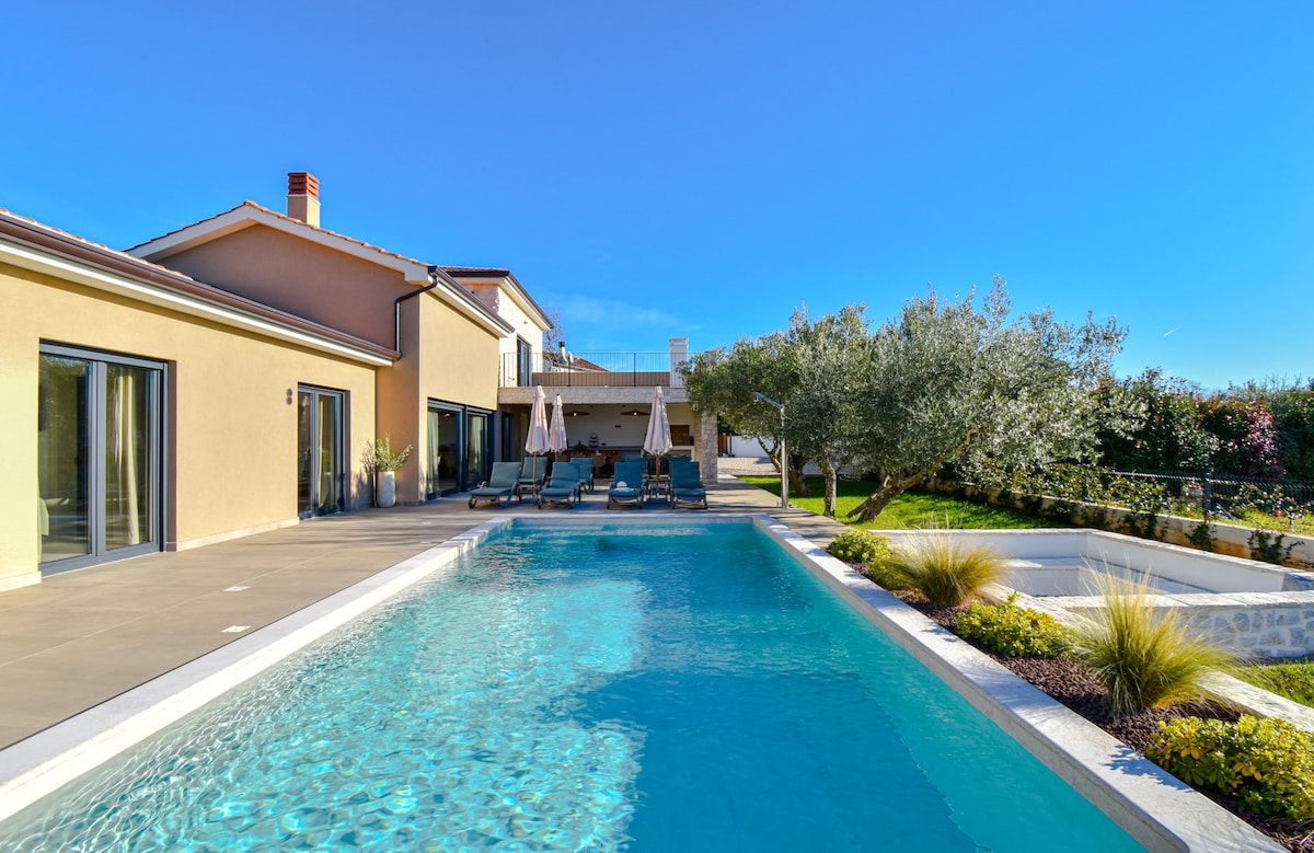 Fiducia別墅是一座全新的豪華別墅,靠近Poreč ,四周環繞著橄欖樹林,設計完美,讓您感到舒適。 旅居設有4間睡房、4間全套浴室和1間半套浴室。 它全年提供舒適和私隱,是家庭、朋友或商務住宿在美麗的伊斯特拉的完美度假勝地。