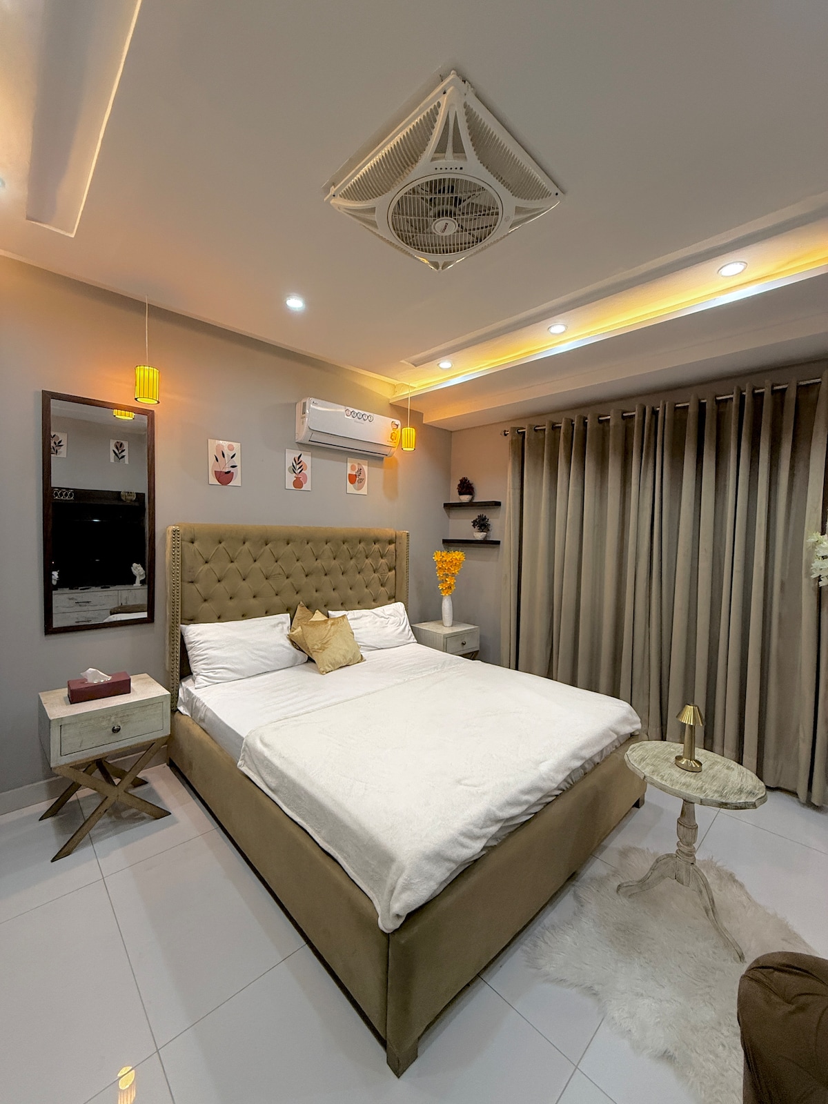 1 BHK Luxury fully furnished Apartment for couples, friends, solo females and families as well located at Main Commercial place in Sector C where everything is in walking distance in the heart of bahria town lahore Safe private & Secluded location - Self Check In with Pin Code - No need to meet anyone & No reception - 24/7 Security - Modern Aesthetic design - King Sized Bed With Soft Spring Mattress - AC only in bedroom - Kitchen - Free Street Parking - Prime Location For more info DM